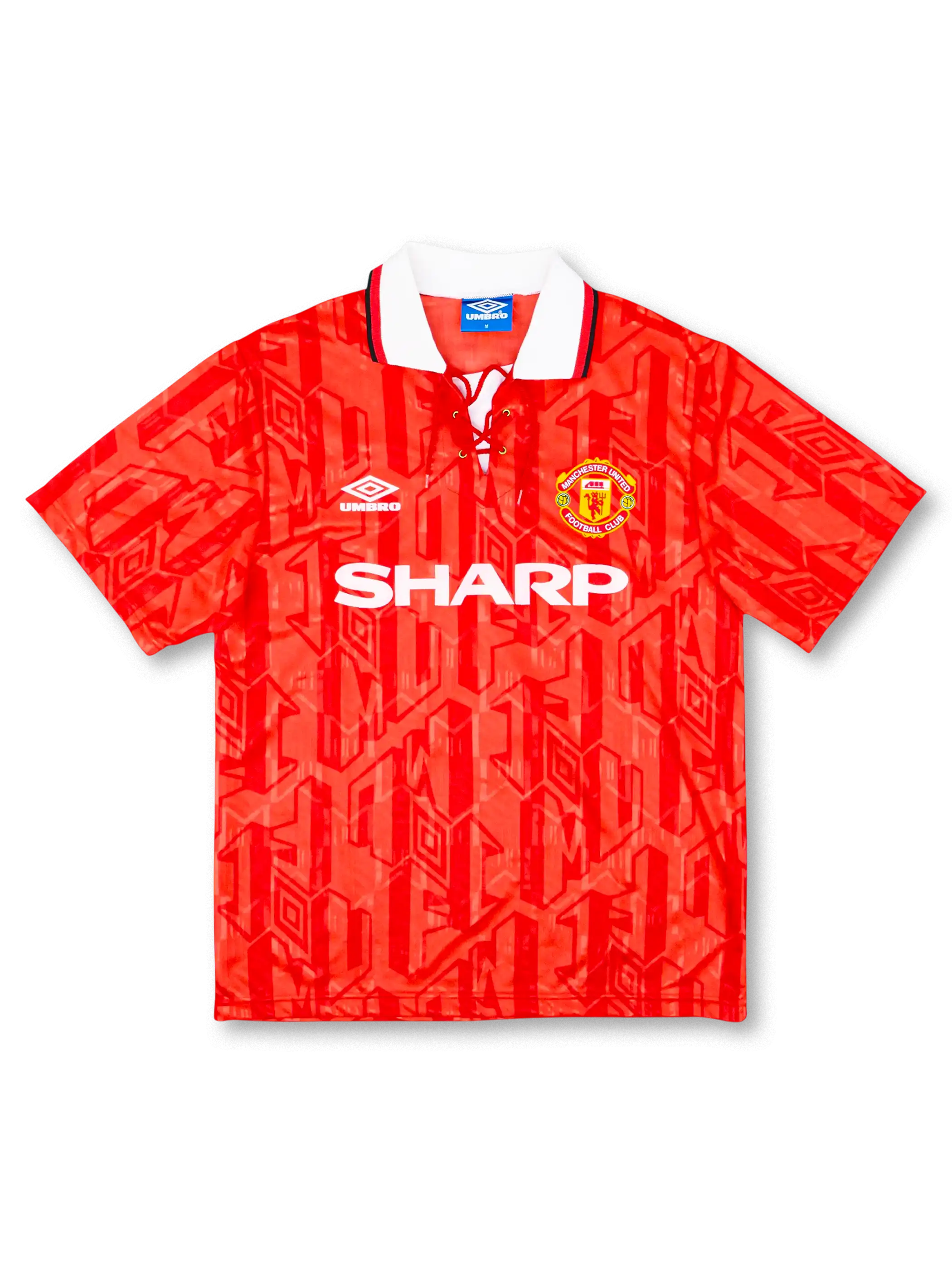 92-94シーズンのユナイテッドを象徴するレースアップ仕様のホームモデルで、背面にカントナ7番が施された初期プレミア期を代表する一着。