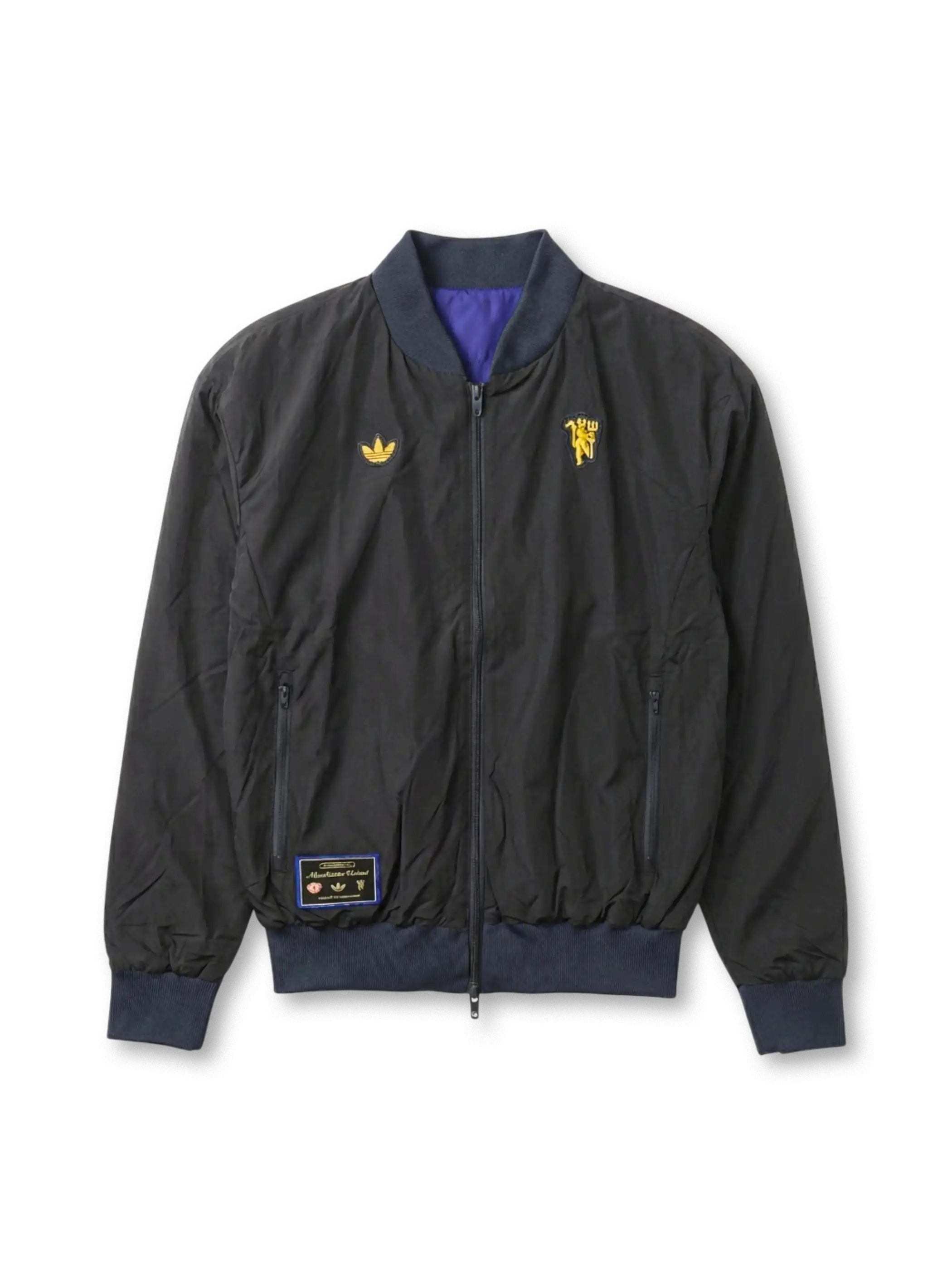 クラブカラーを抑制したモダン配色とオリジナルス仕様の刺繍ロゴを組み合わせ、両面で異なる表情を楽しめる2025-26シーズンのリバーシブルジャケット。