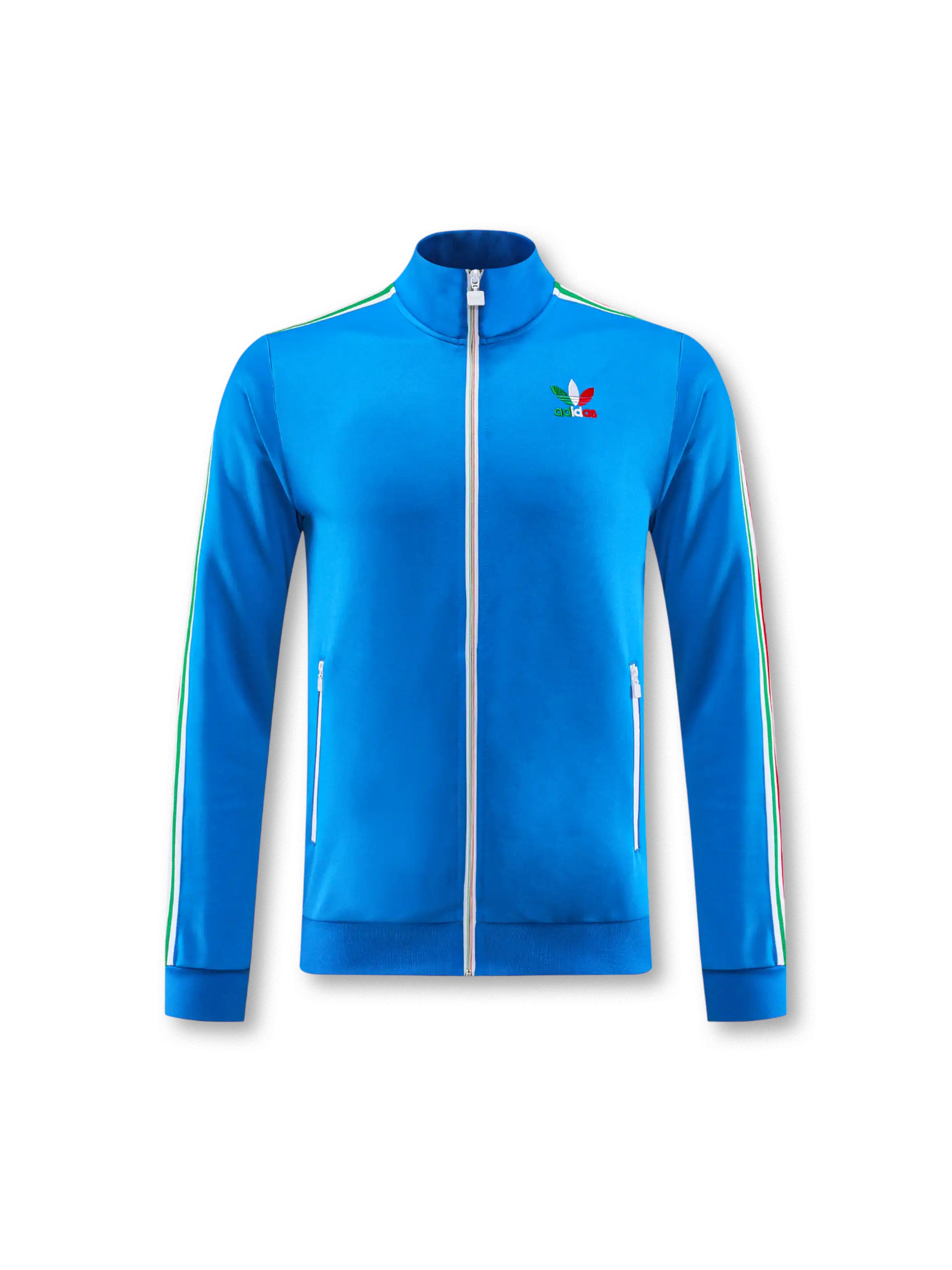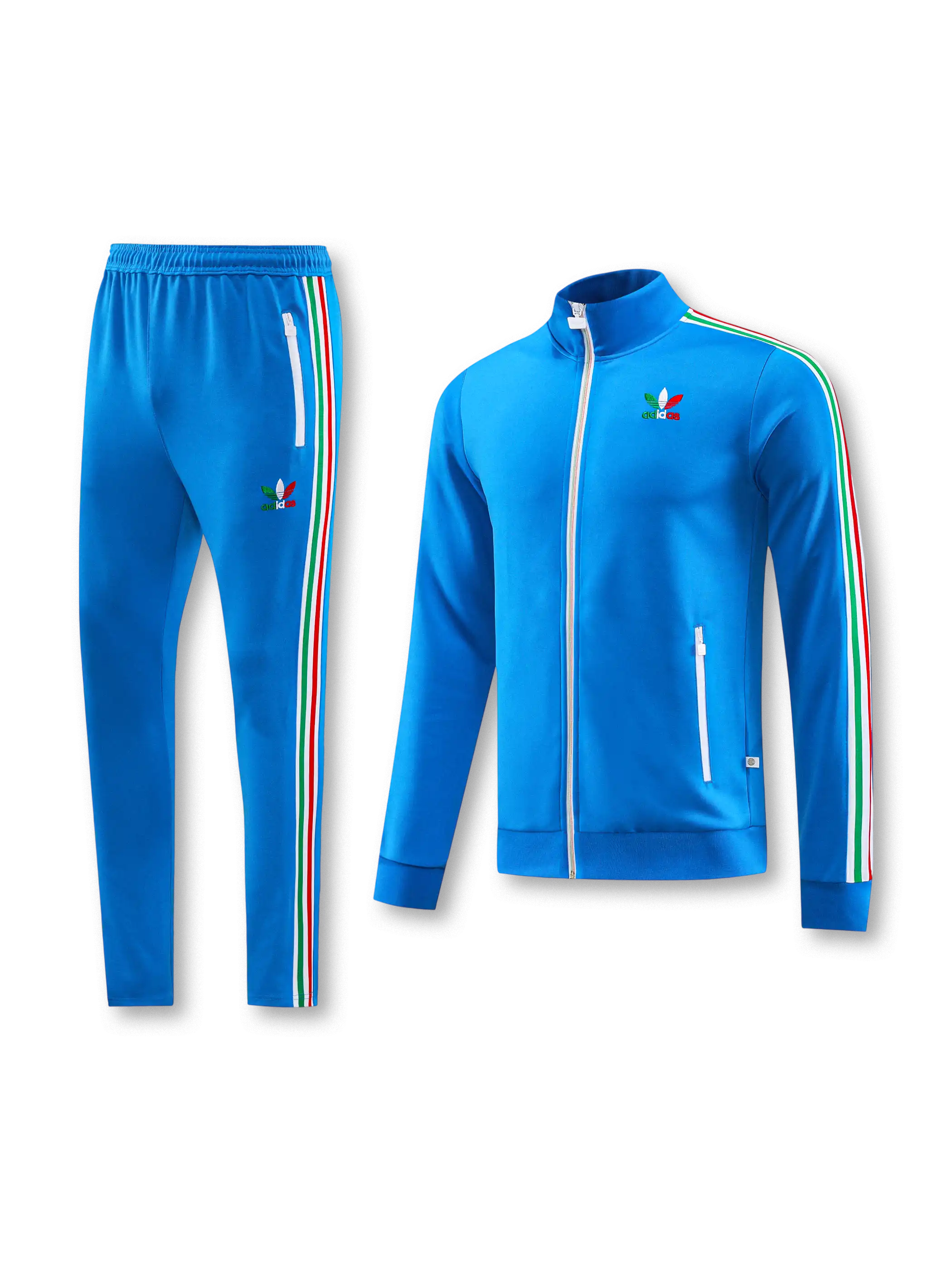 ブルーボディにグリーン・ホワイト・レッドの縦ラインを配した、イタリアカラーが印象的なadidas Originalsトラックスーツセット。