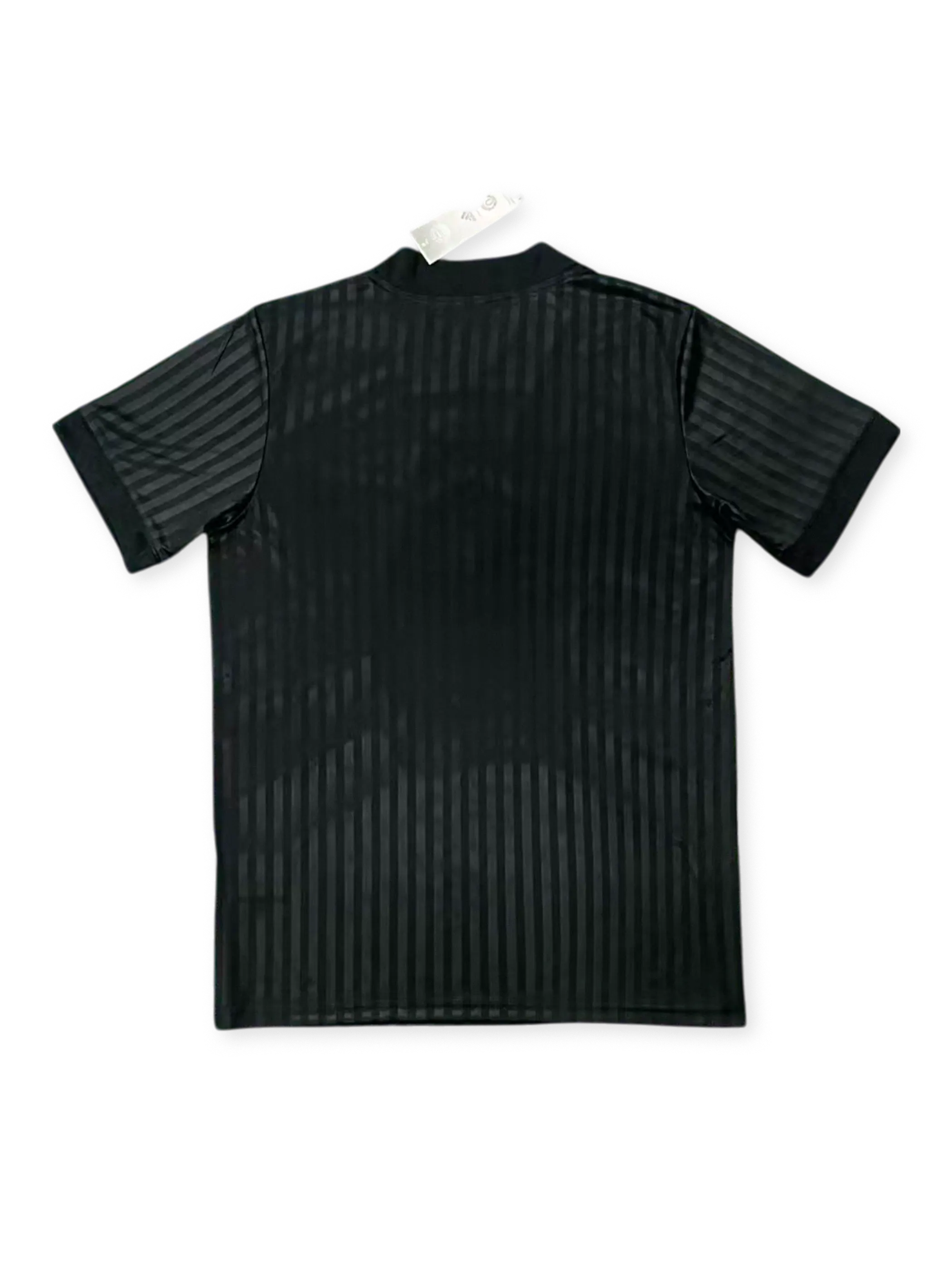 90年代のレトロ感を再現したブラックベースのデザインに、マンチェスター・ユナイテッドの象徴が際立つ、クラシックかつスタイリッシュな一着。
