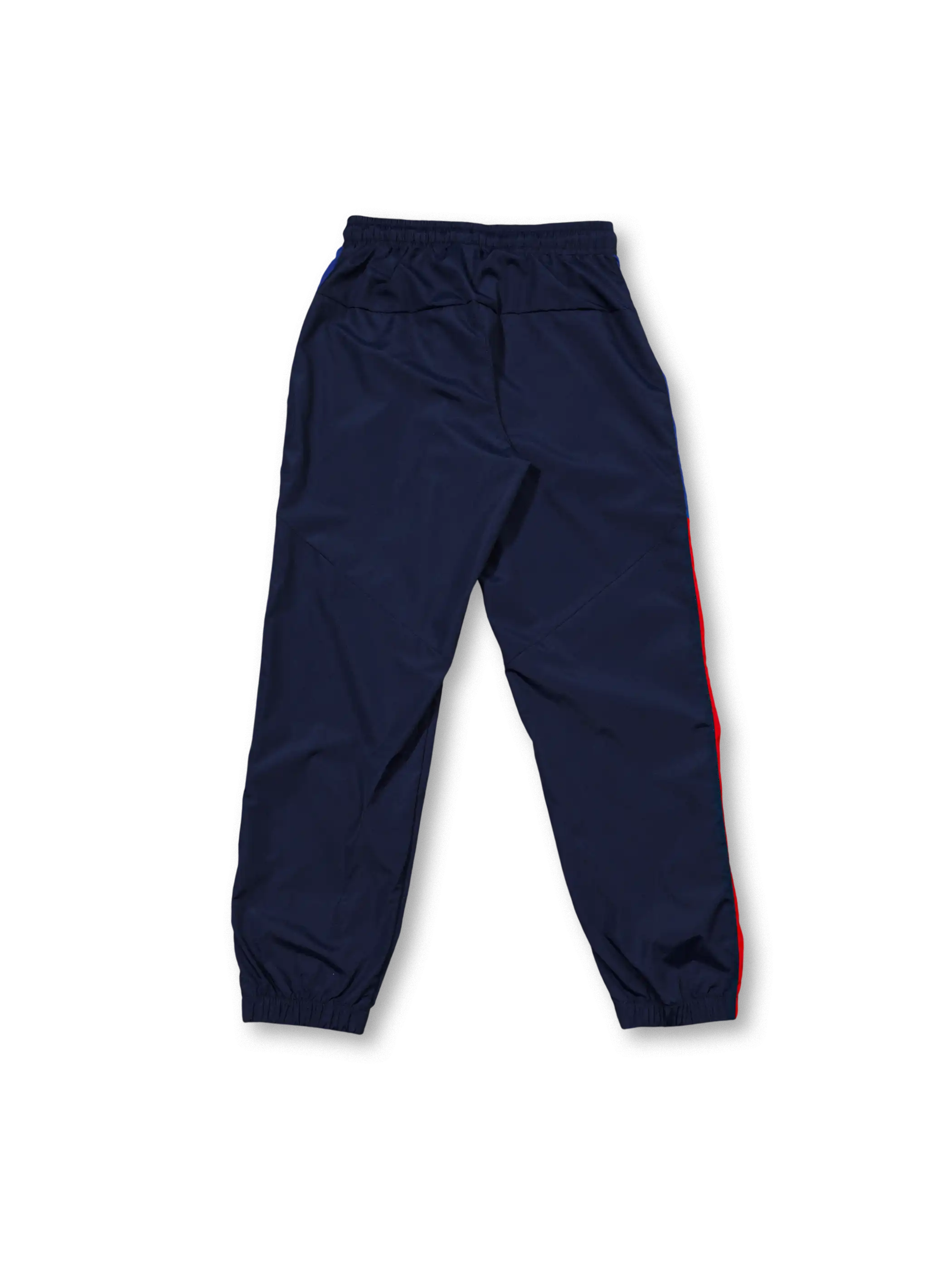 ホワイトとネイビーの端正な配色に三獅子エンブレムを配した、イングランド代表の移動着仕様トレーニングセットアップ。