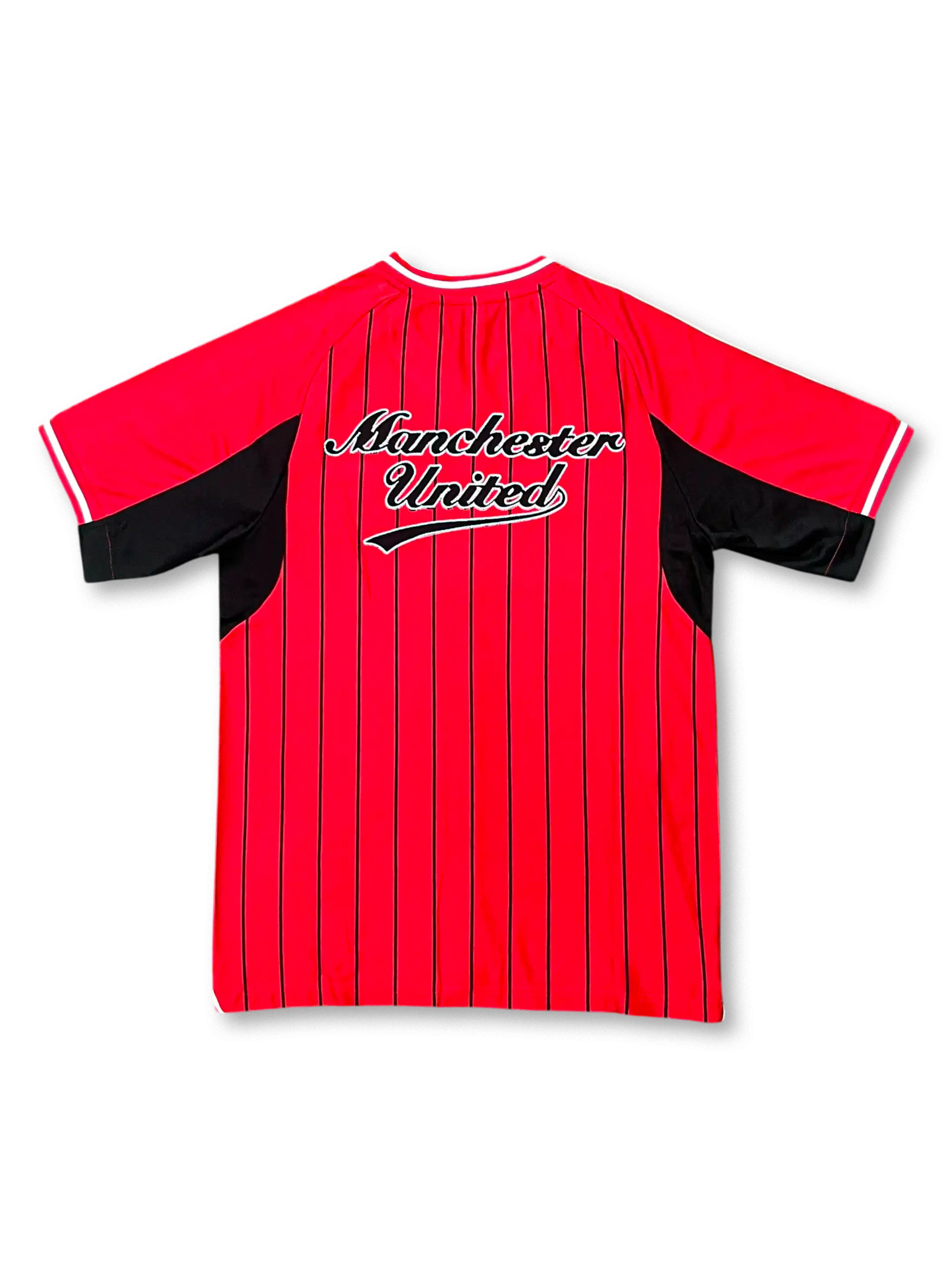2025/26シーズンに登場したマンチェスター・ユナイテッドのレッドベースボールシャツは、クラブ創設年「1878」を刻むタグとピンストライプデザインを融合した限定スタイル。