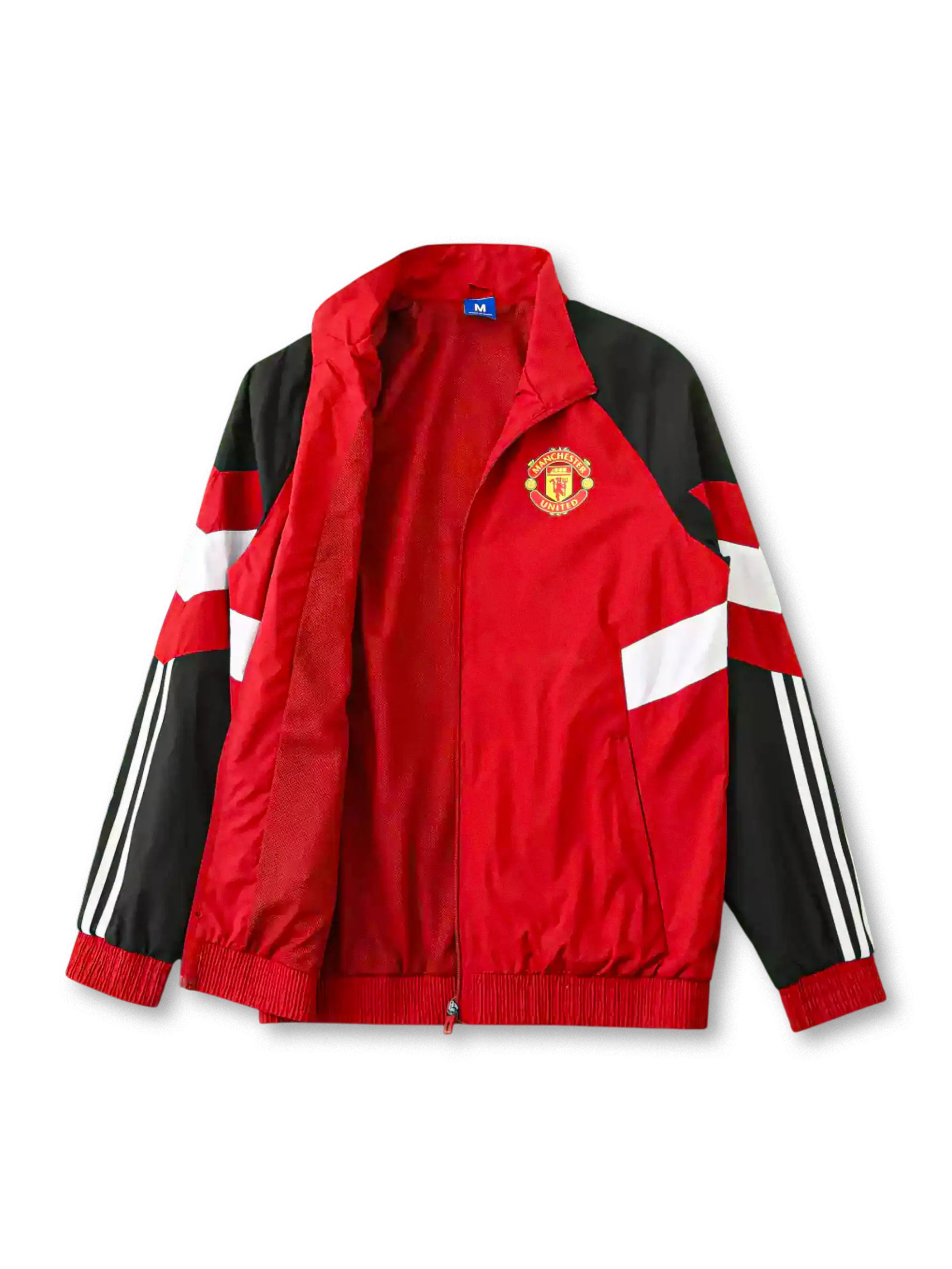 赤を基調にブラックとホワイトを組み合わせたユナイテッドのクラシック防風ジャケット。