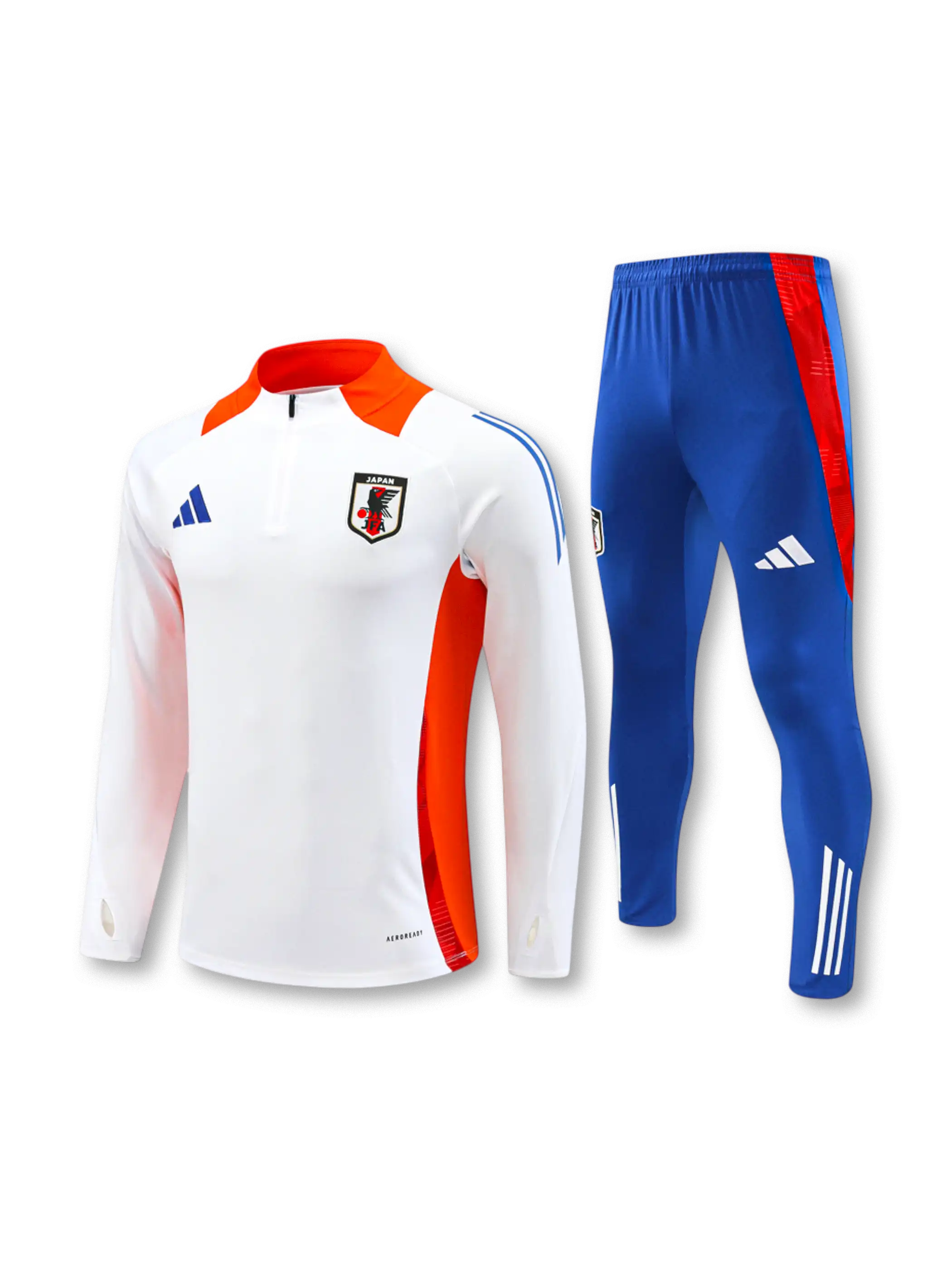 2425年日本代表仕様のホワイト長袖ハーフジップとパンツのセットアップ。