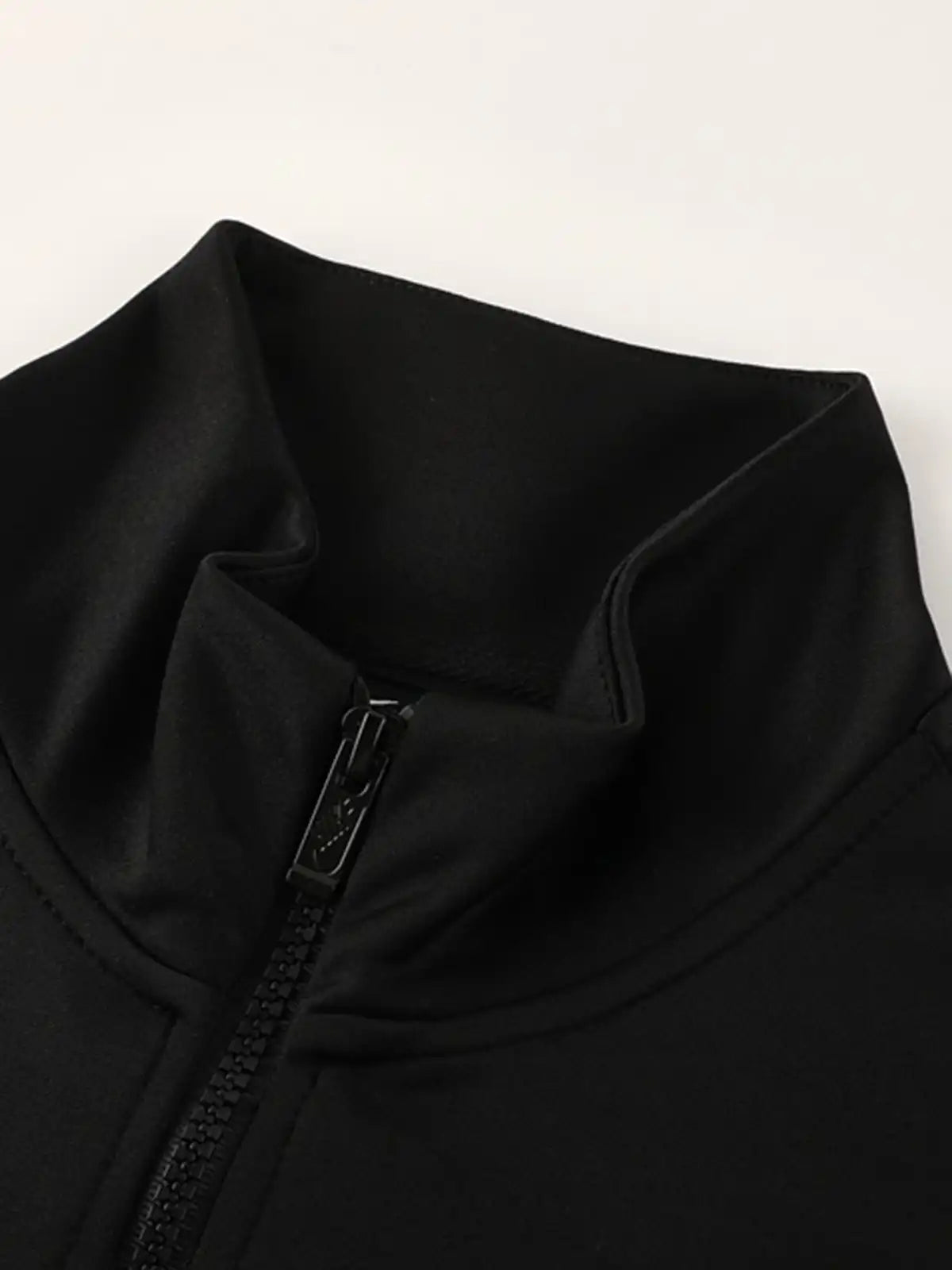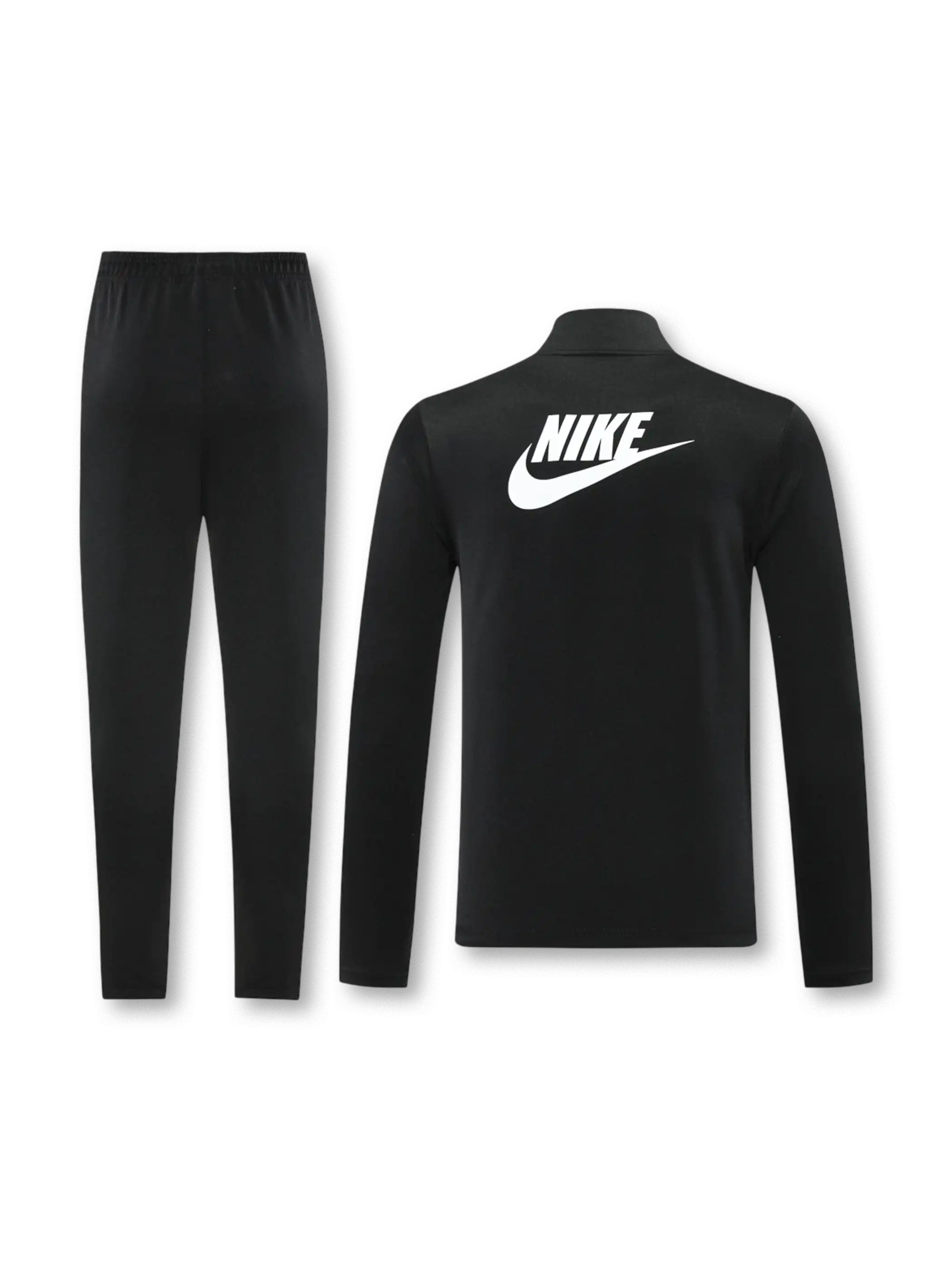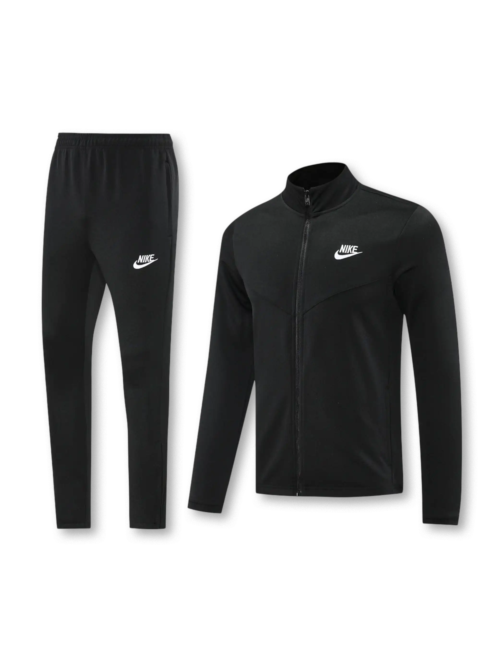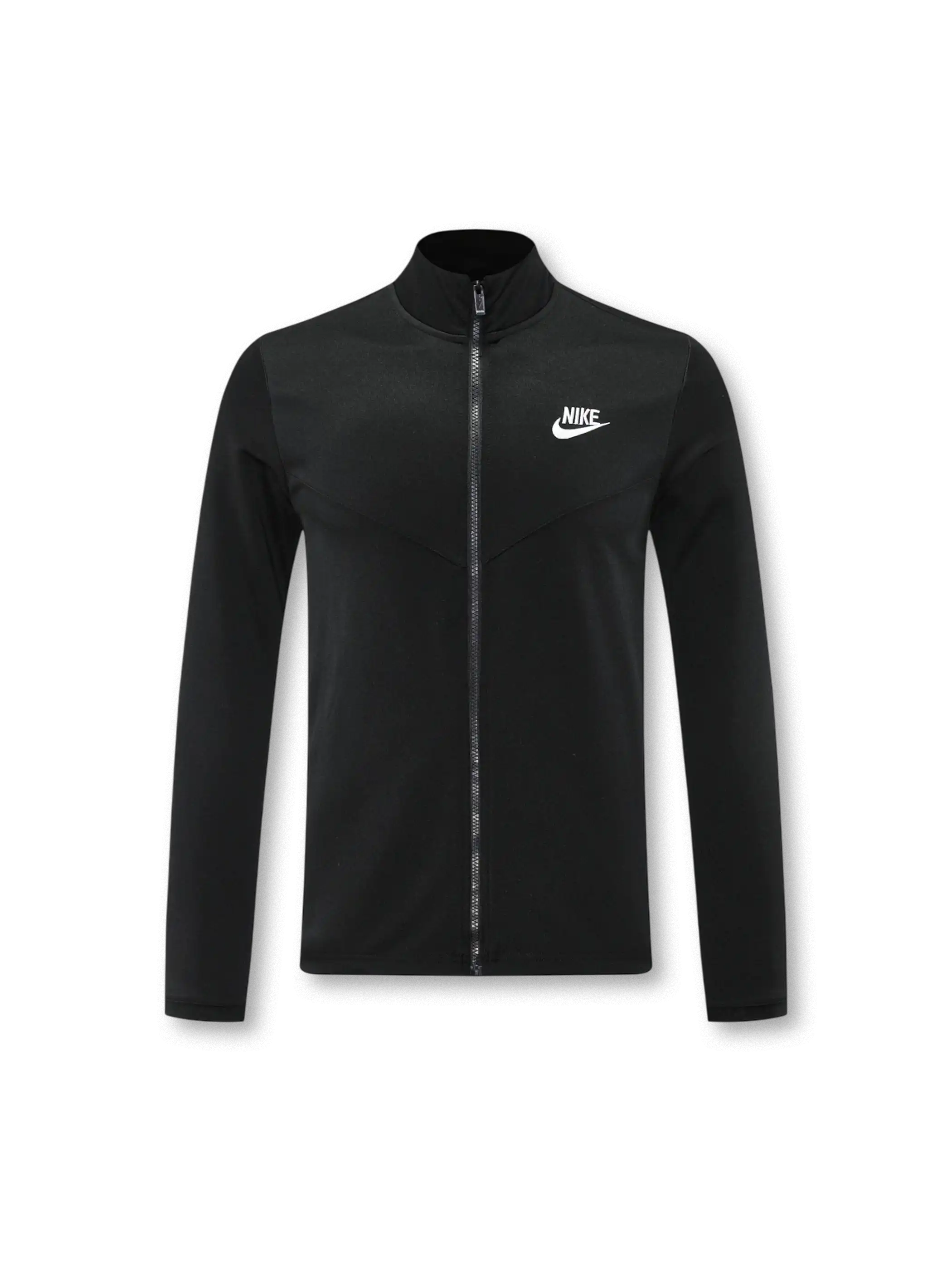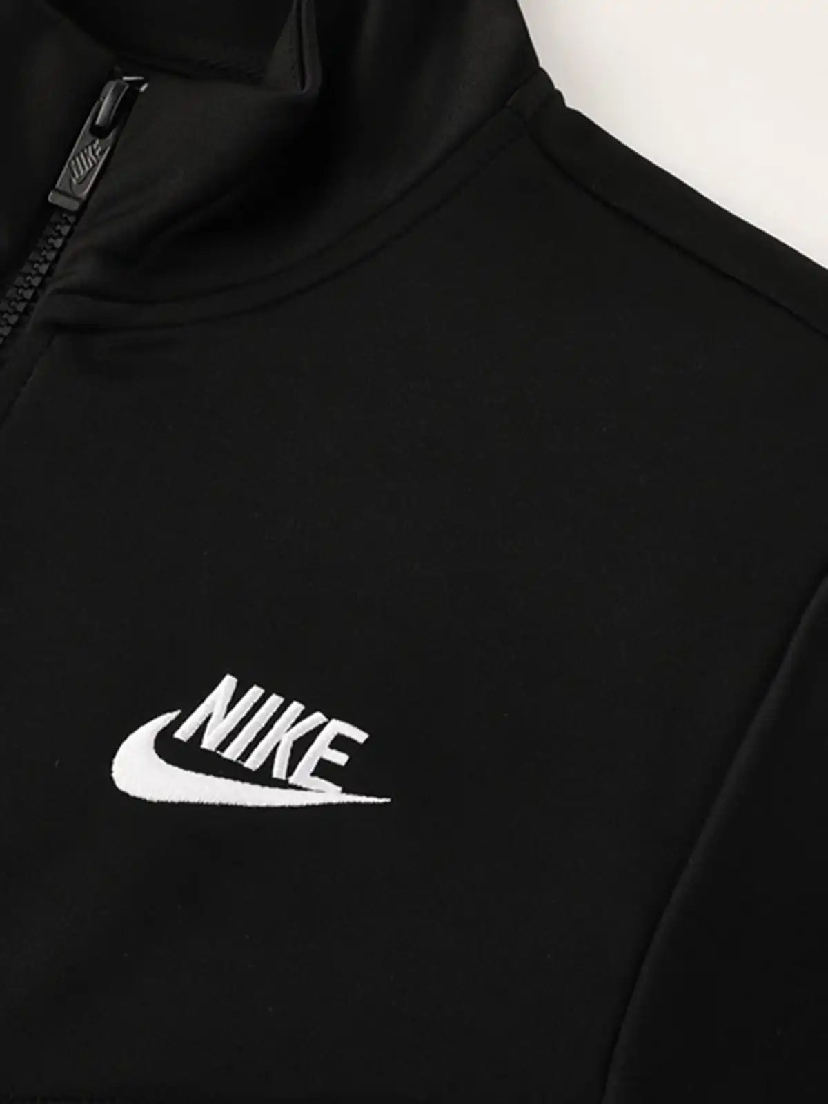 オールブラックにスウッシュ刺繍を配した、フルジップ上下トラックセット。