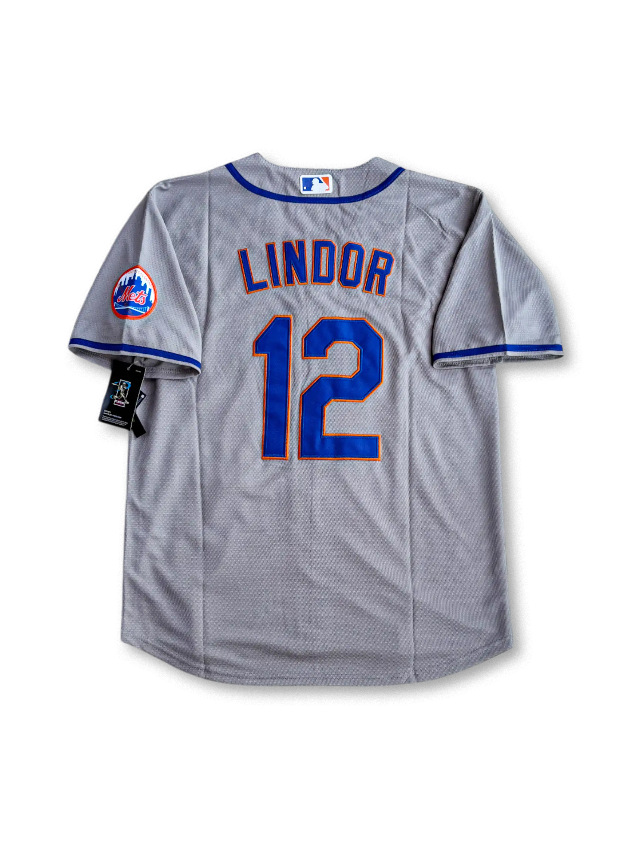 このアウェイユニフォームは、伝統的なグレーを基調にフロントへ「NEW YORK」のチーム名を鮮やかなブルー&オレンジで配置。背面には「LINDOR」と背番号12がプリントされ、袖にはクラシックなメッツロゴパッチを搭載。速乾性と通気性に優れた軽量素材を採用し、観戦やタウンユースにも適した一着。クラシカルなデザインと現代的な機能性を併せ持ち、ファン必携のモデル。