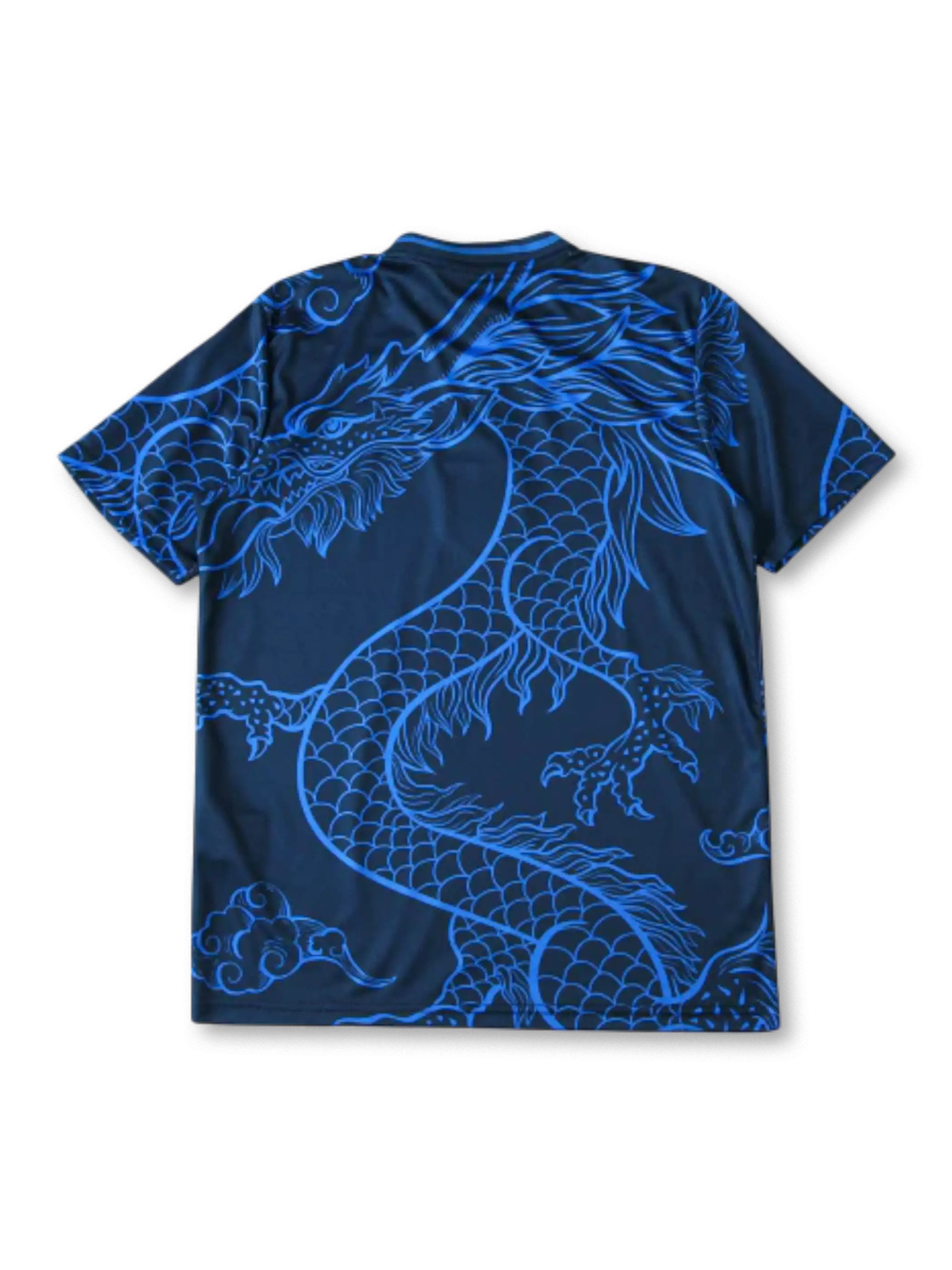 濃紺を基調に、和の龍を象徴するブルーの総柄グラフィックを全面に配置した大胆なデザインが特徴。胸元には Y-3 ロゴと日本代表エンブレムをバランス良くレイアウトし、肩には 3 ストライプスを採用。軽量ポリエステル素材による滑らかな着心地と速乾性に優れ、日常着としてもコレクションとしても高い完成度を持つ特別仕様モデル。