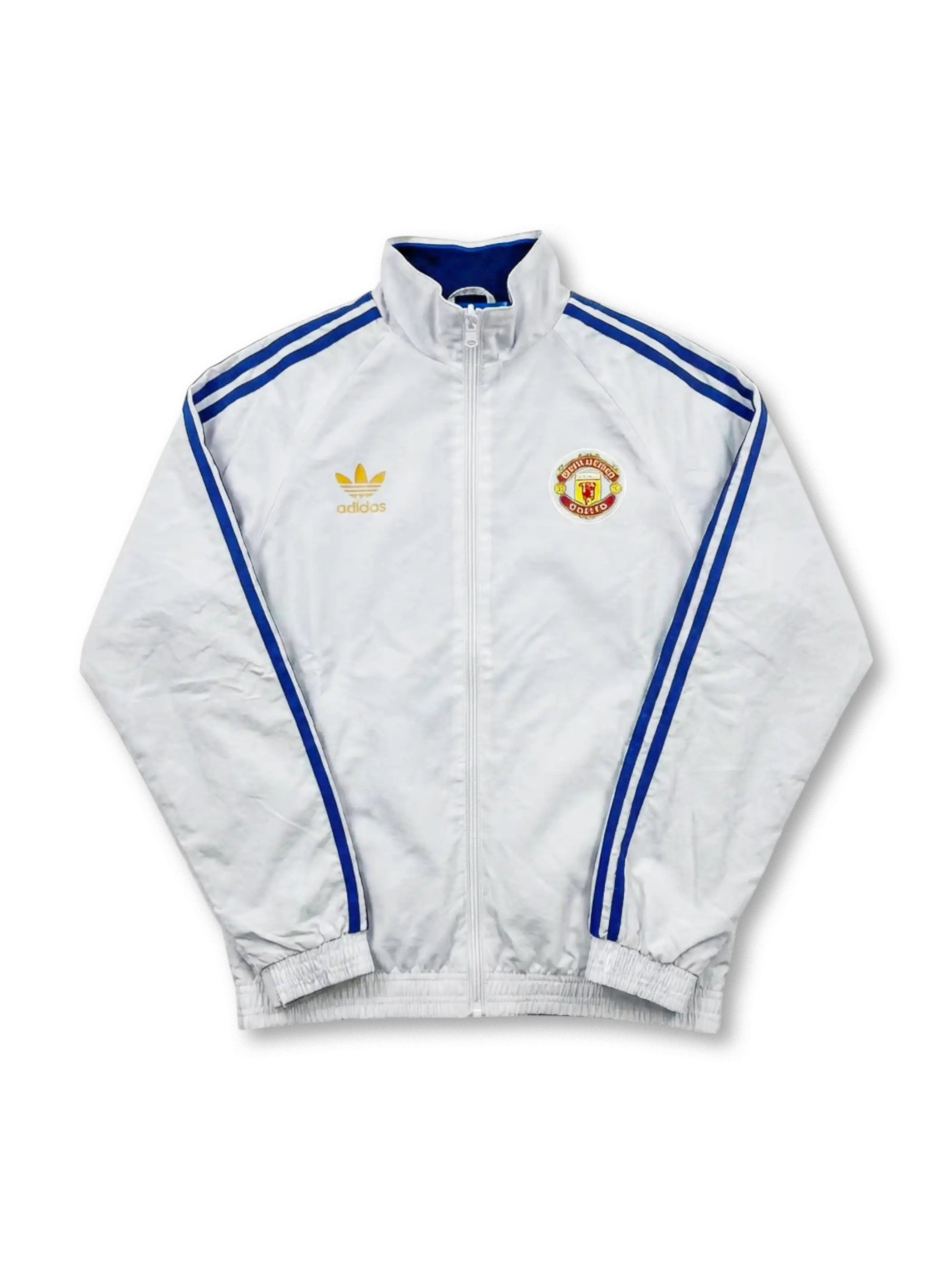 96/97期のマンチェスター・ユナイテッドが着用した意匠を再構成した白×ブルーのリバーシブルジャケット。クラシックなUMBRO期の表現とadidasトレフォイル仕様が共存する特別設計。