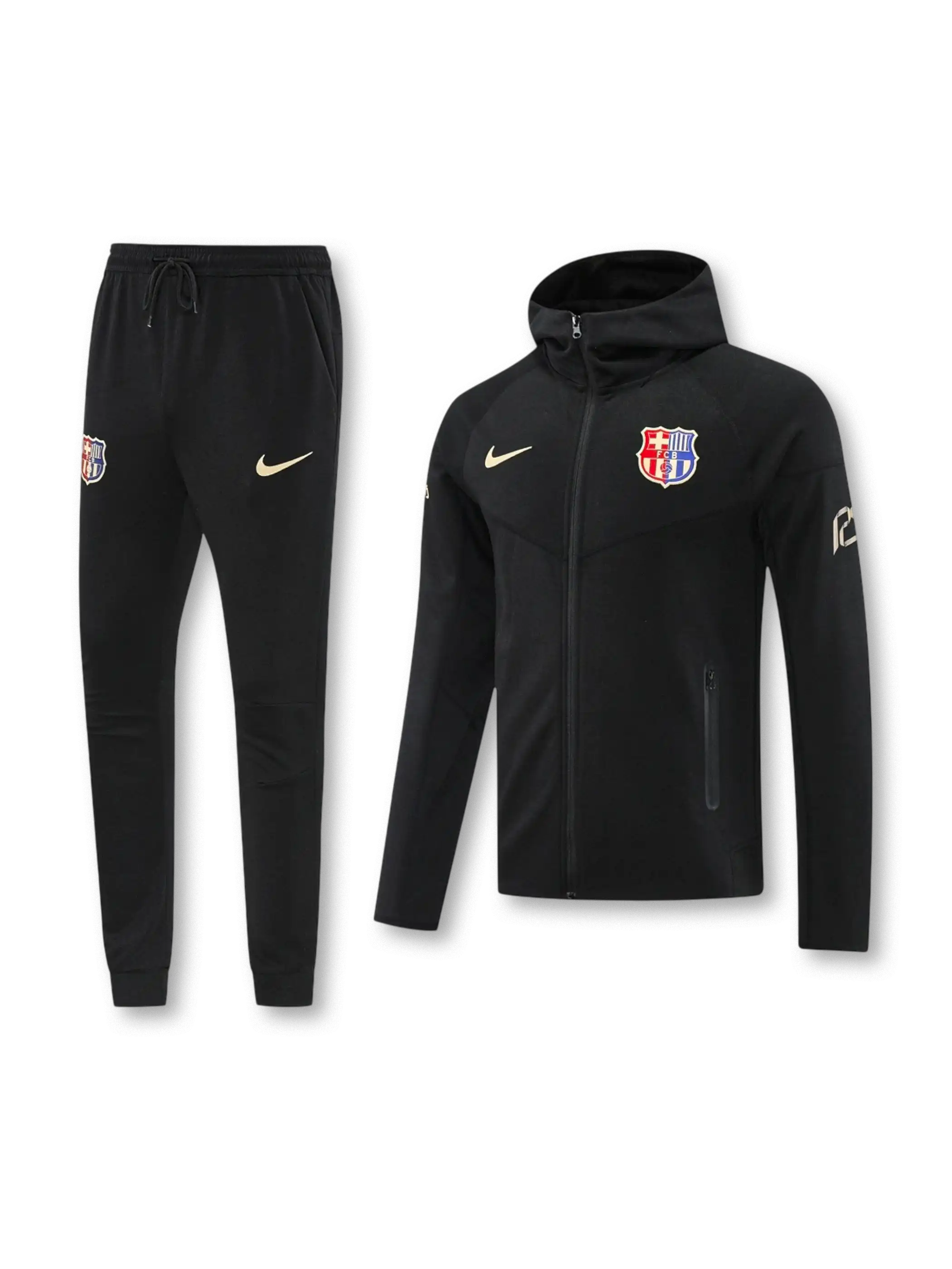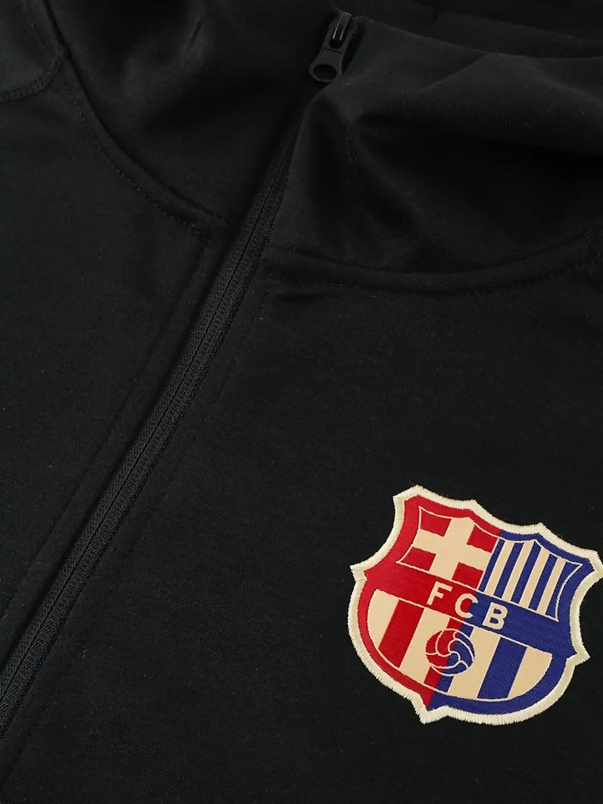 ブラックを基調にクラブエンブレムを配した、実用性と統一感を備えたフード付きトレーニングセット。