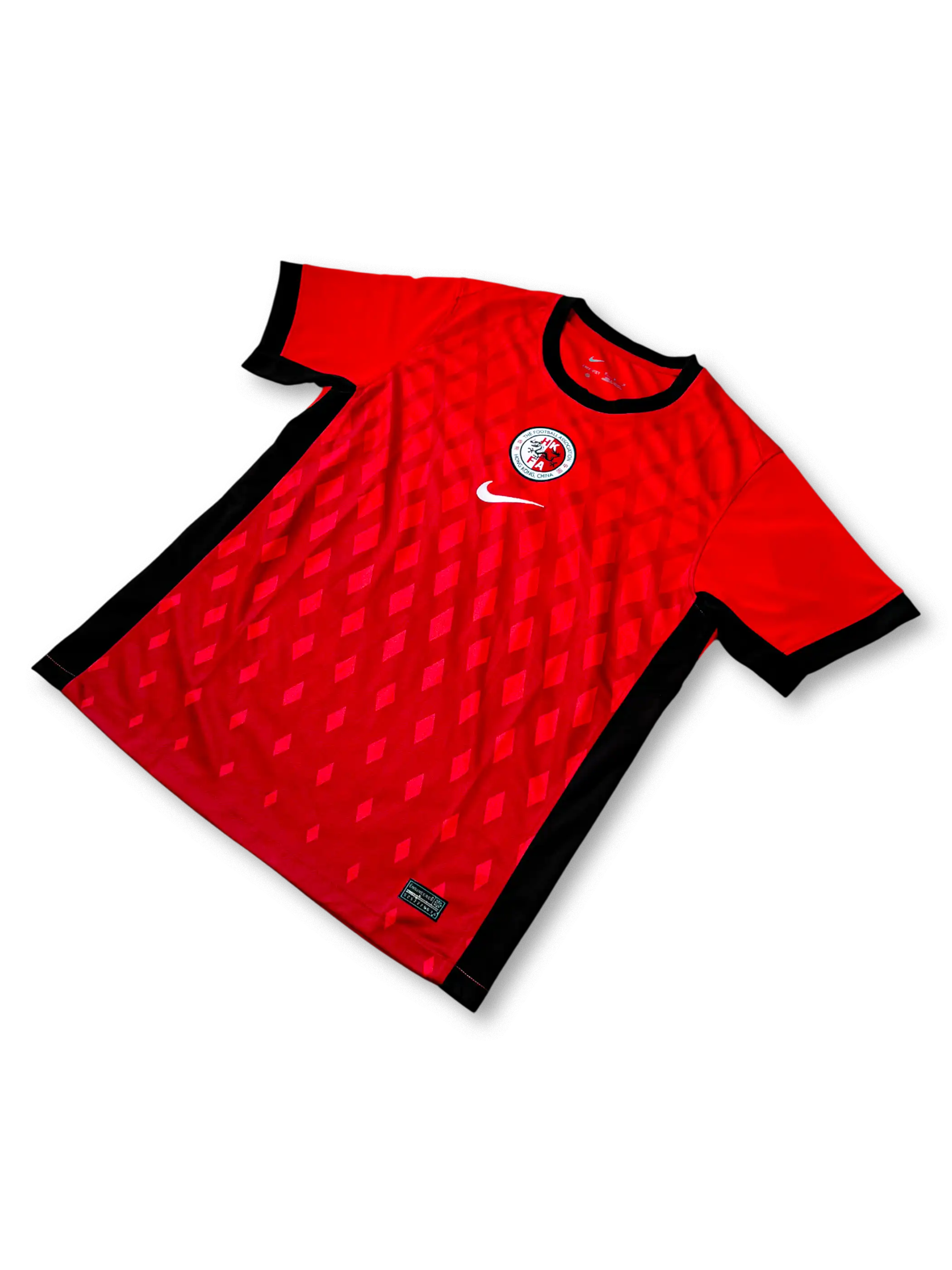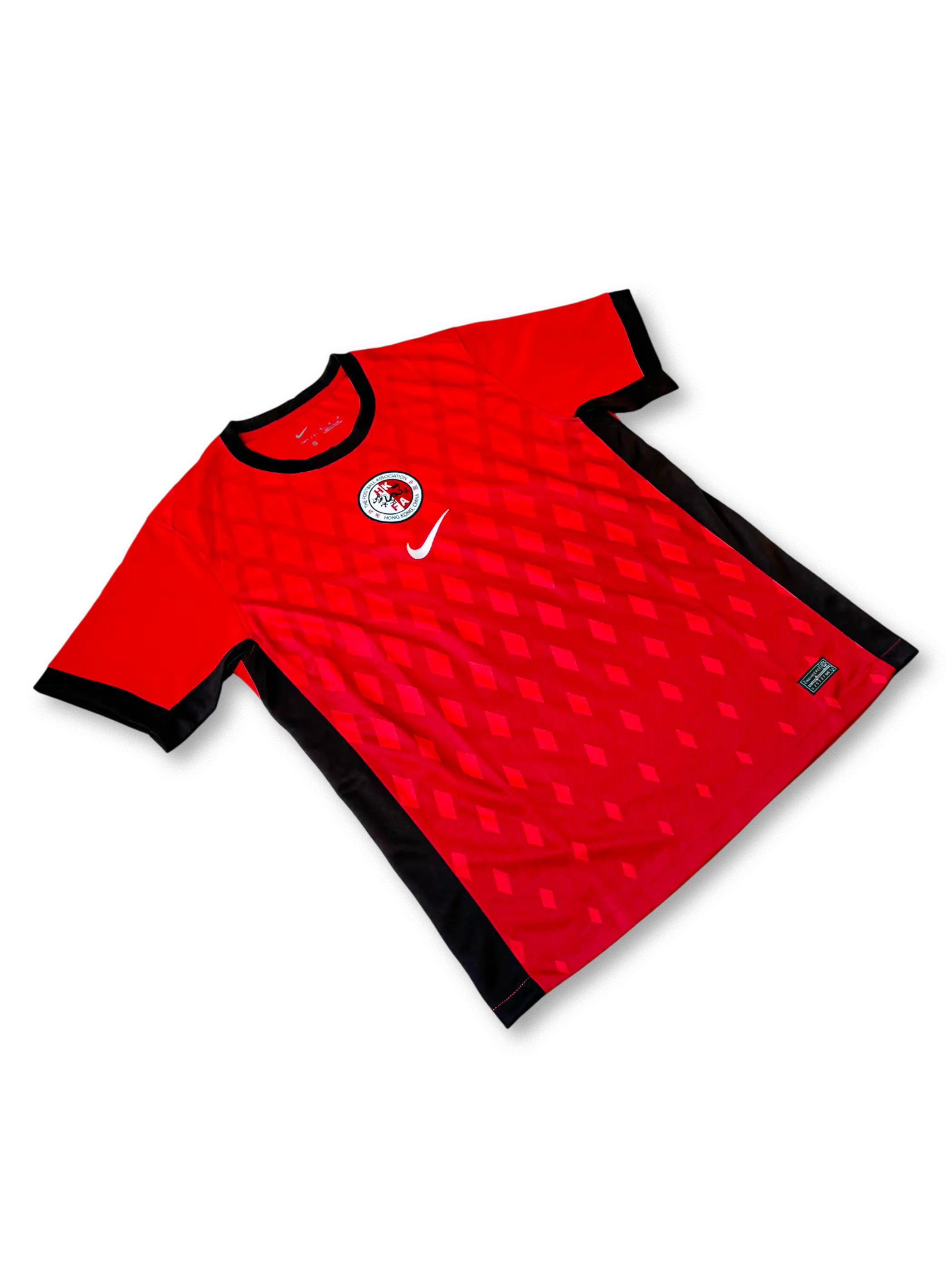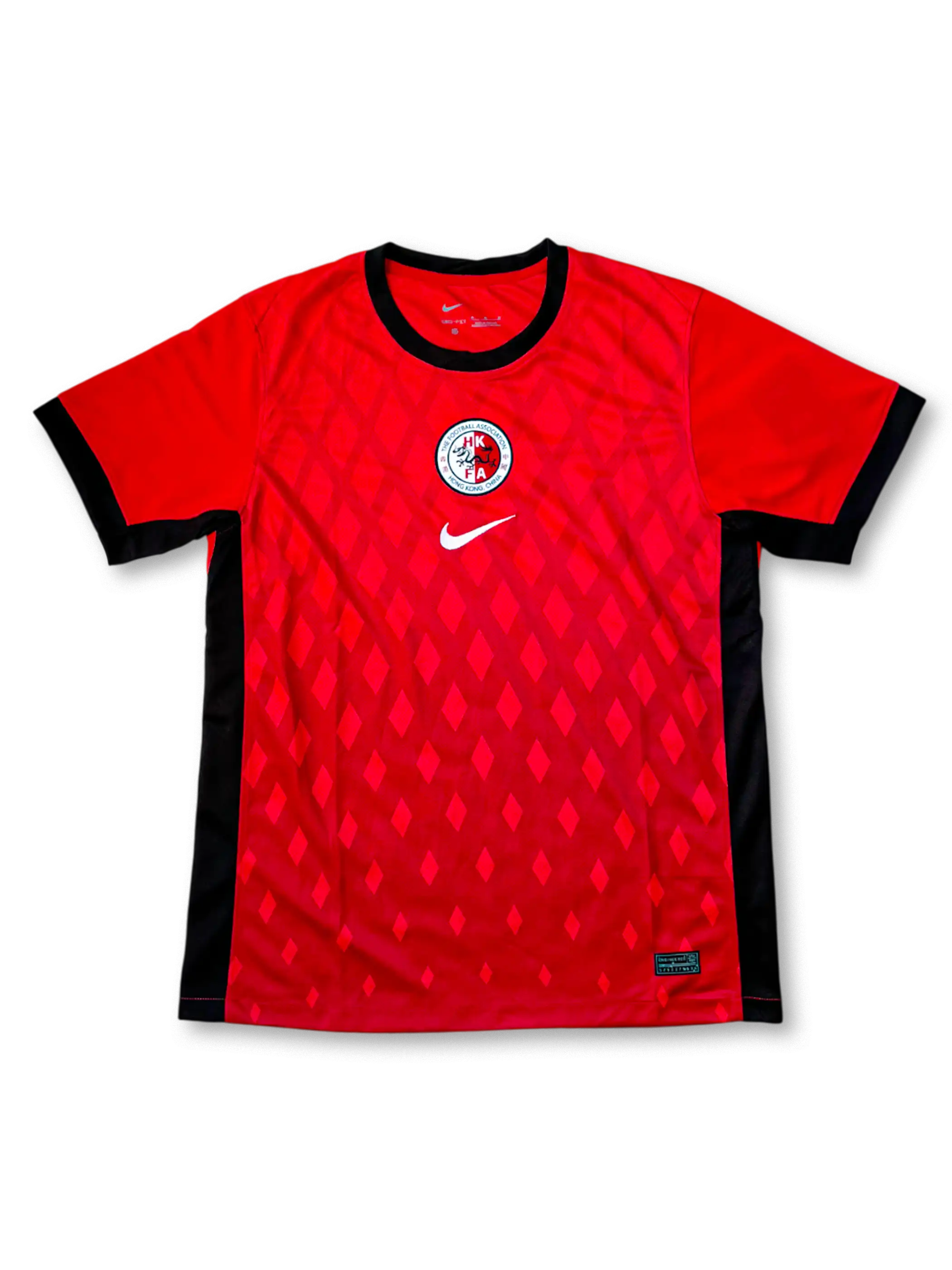 鮮烈なレッドを基調とし、ブラックのアクセントラインが全体を引き締めるデザイン。胸部にはNikeスウッシュと香港代表エンブレムを配置し、都市の誇りを象徴。ファン仕様のレプリカモデルとして、日常のスタイルにも取り入れやすいシルエットと快適なポリエステル素材を採用。