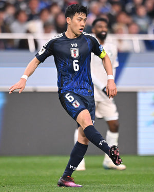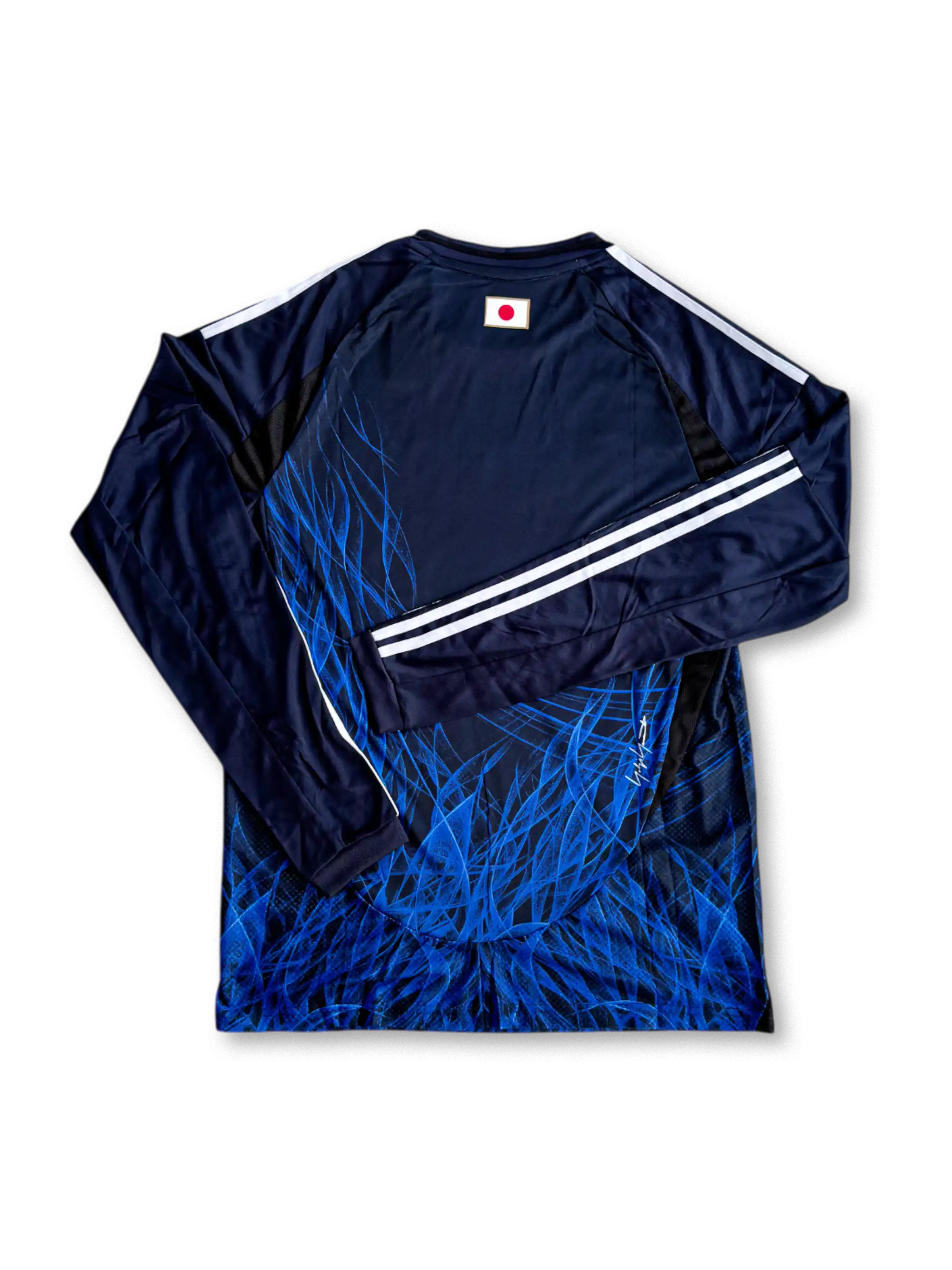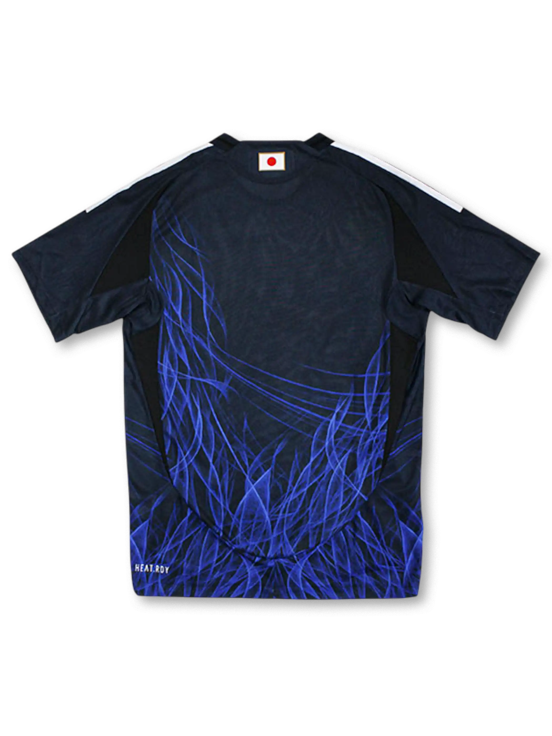 2024/25シーズン、日本代表がY-3とのコラボレーションで着用する長袖ホームユニフォーム。藍を基調に炎のグラフィックが燃え上がるデザインは、闘志と美意識を融合させた一着。