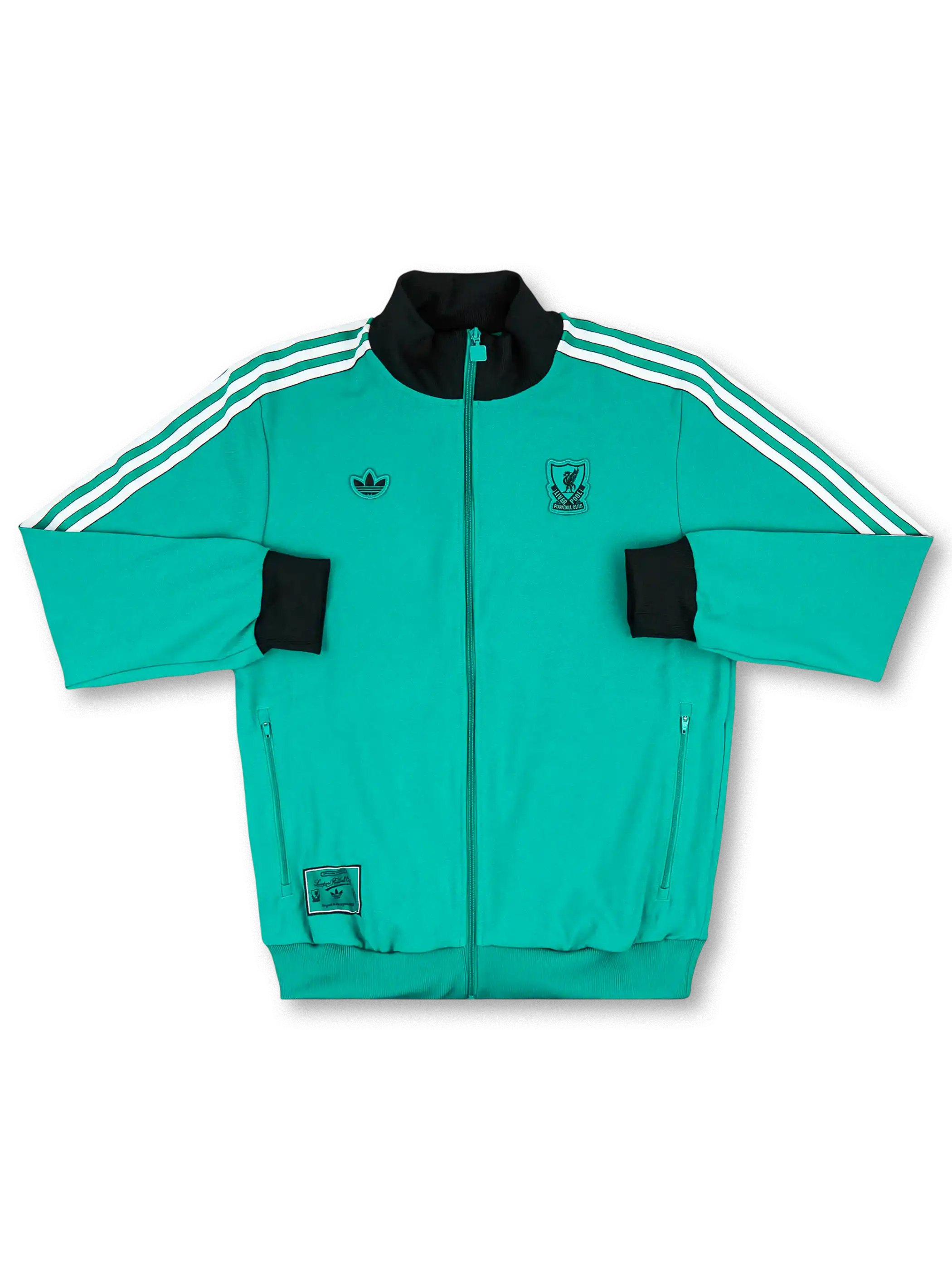 チームカラーを踏襲したターコイズトーンをベースに、胸元にはオリジナルス仕様のクラシックエンブレムを配置し、袖とパンツに3ストライプを施した一体感のあるデザインで、ソフトなポリエステルニットにより移動着やタウンユースで扱いやすい快適性を確保している。