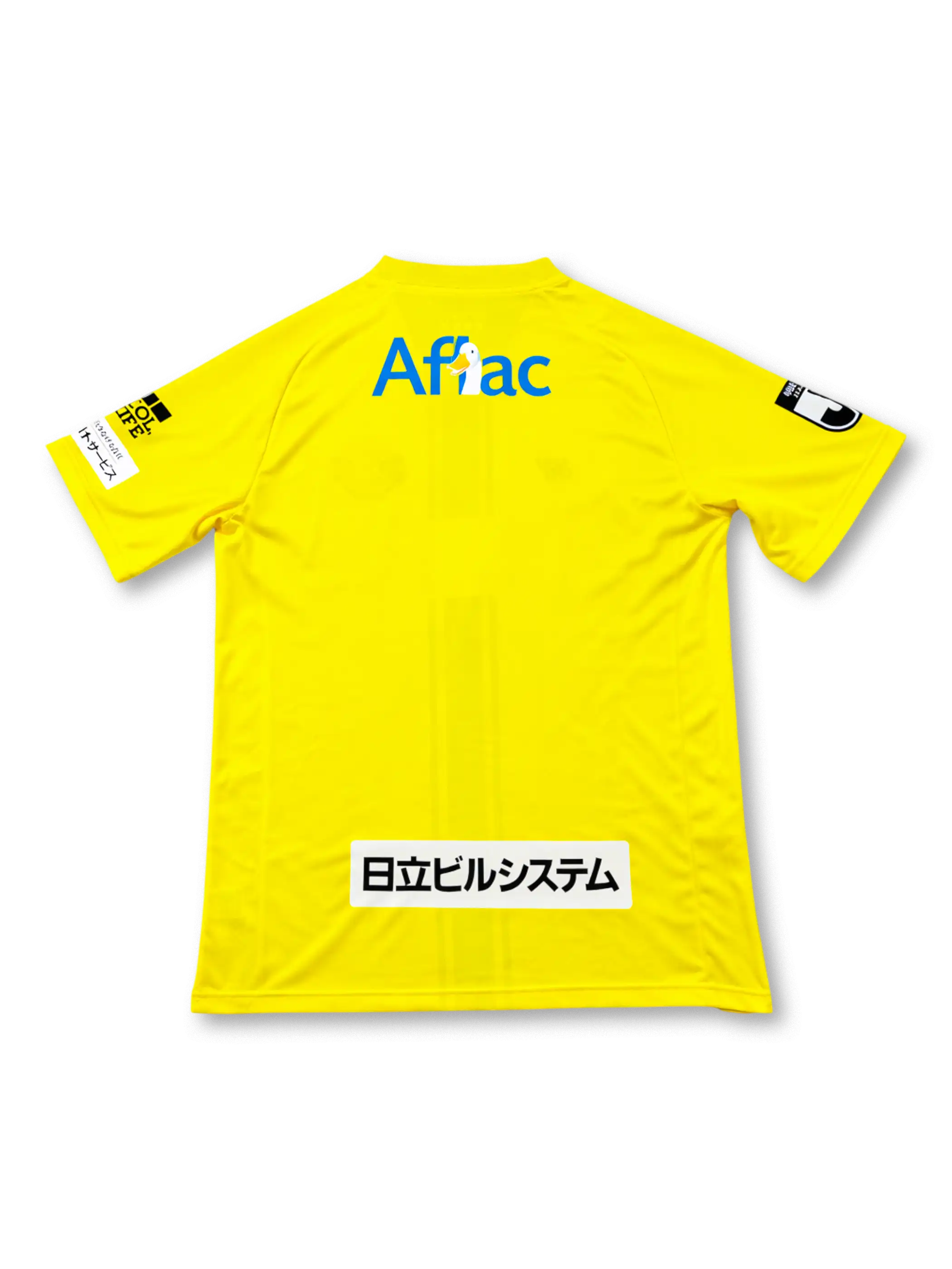 鮮やかなイエローベースに中央黒縦ストライプ2本のクラシックデザイン、メインスポンサーHITACHI、胸部に日立システムズ・ジョロウテナ、背面にAflac・日立ビルシステムの多層スポンサー配置。襟元に3つ星エンブレムとクラブモットー「LIFE as ACTIVE as LIFE as REYS!」を刺繍、YONEX製の高機能素材を採用した日立グループ復帰記念モデル。