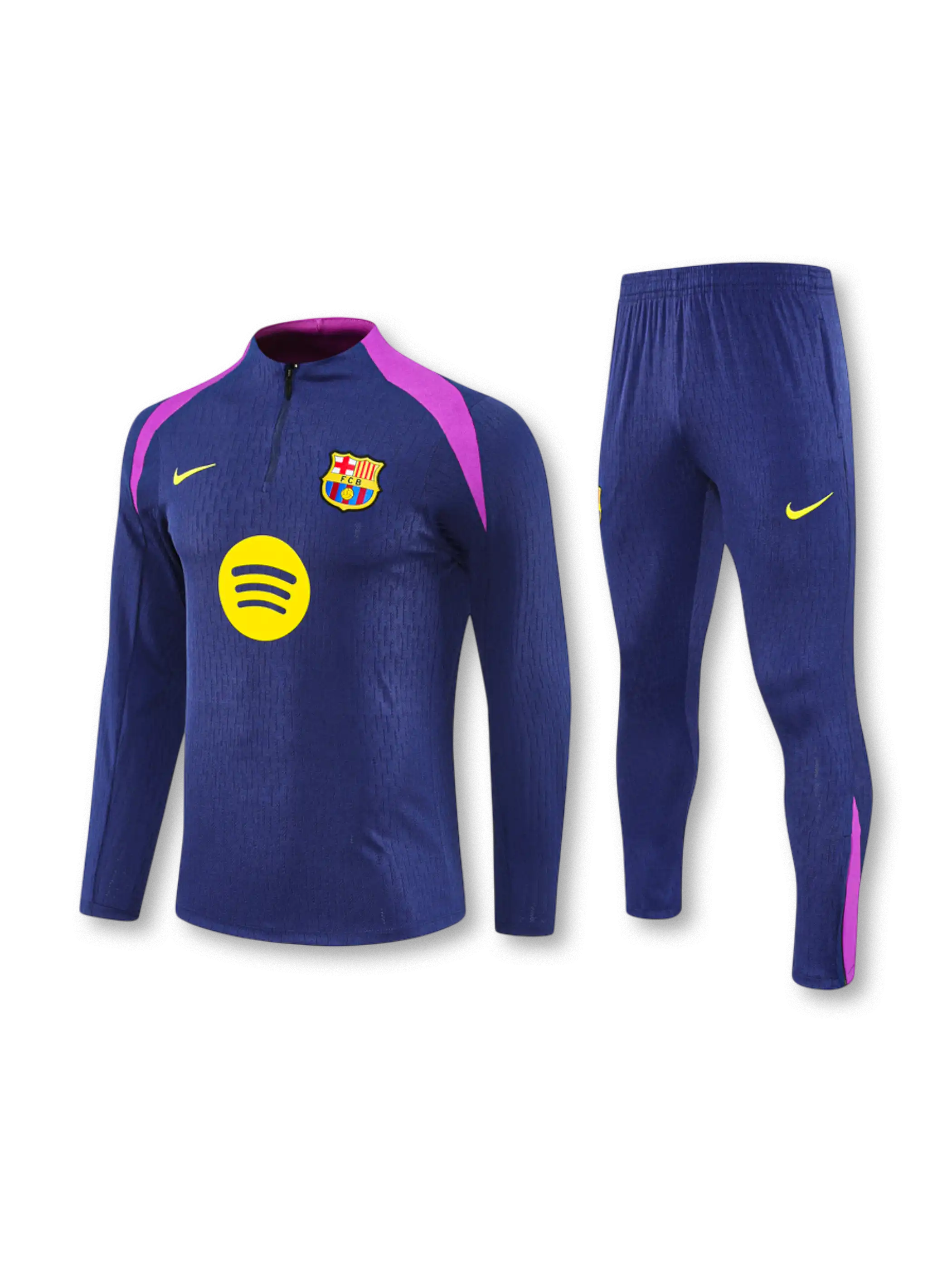 2026シーズンに展開されたFCバルセロナの選手仕様トレーニングセット。宝蓝色ボディにイエローバッジを組み合わせた識別性の高いカラー構成が特徴。