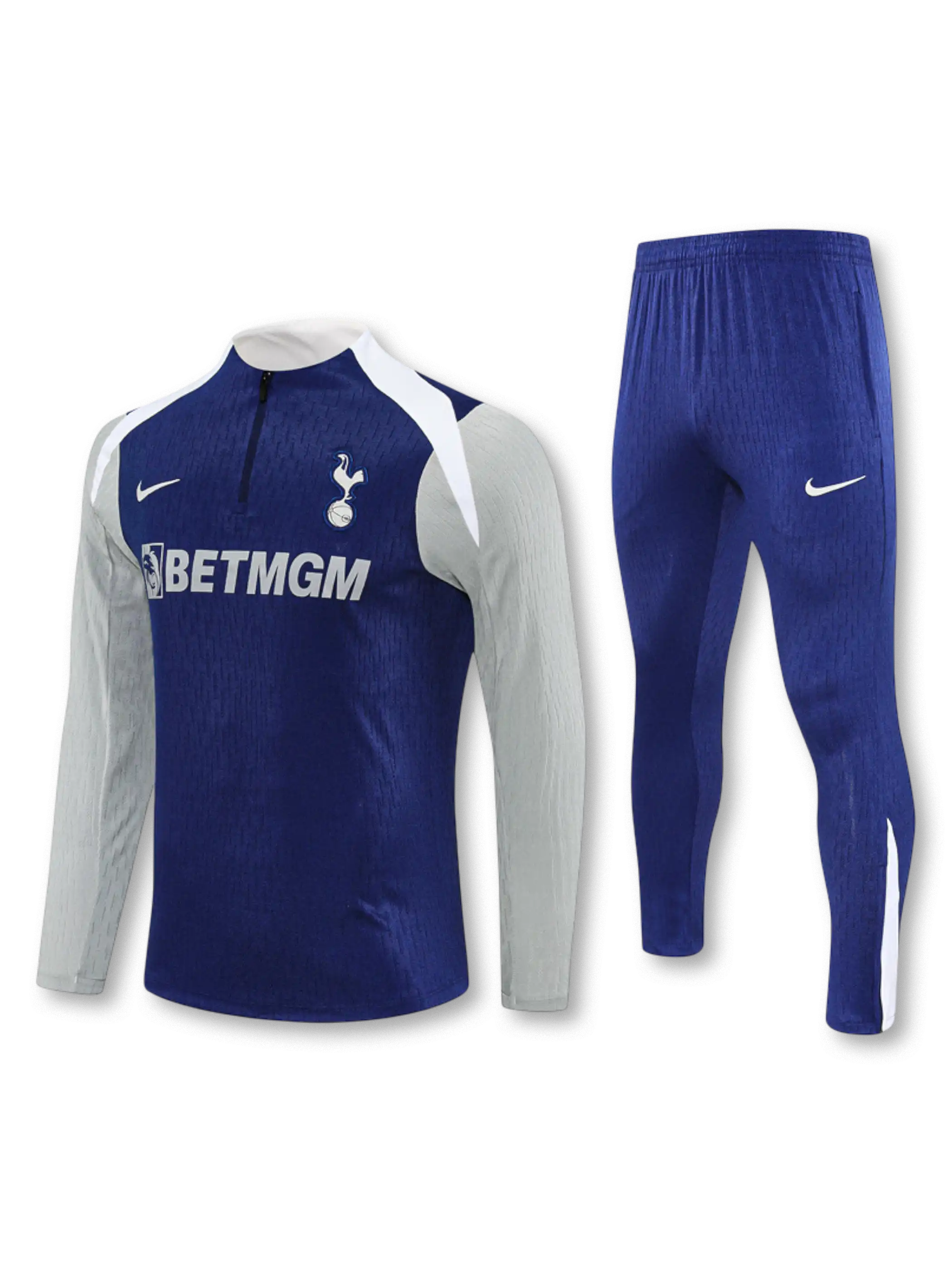 ロイヤルブルーとライトグレーの切替を特徴とする2026年トッテナム選手仕様モデル。胸元ロゴとスポンサーをホワイトで統一した公式トレーニングスーツ。