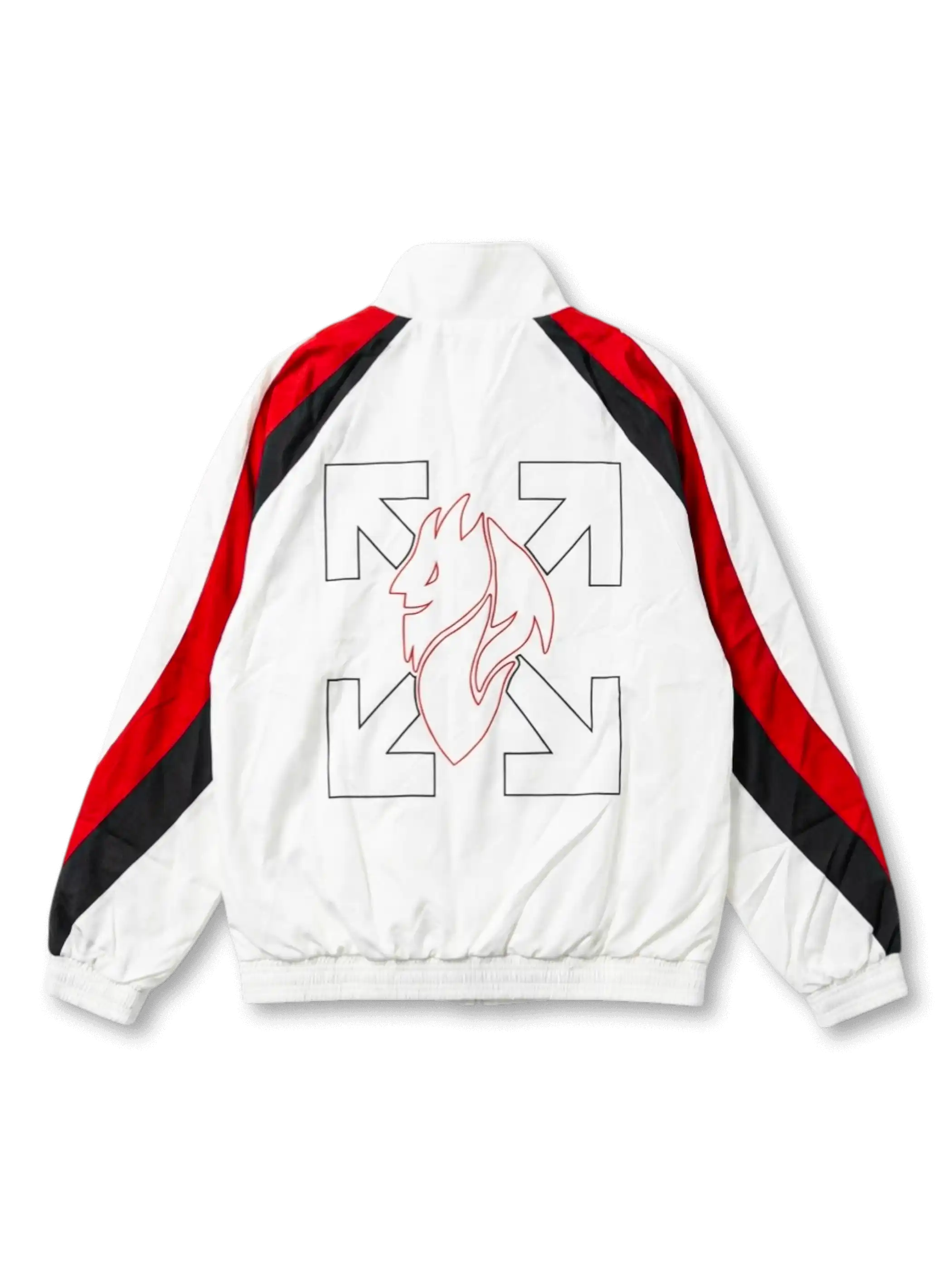 ホワイトを基調に赤黒の切り替えとディアヴォリ意匠を組み合わせた、コラボ系ライフスタイルジャケット。
