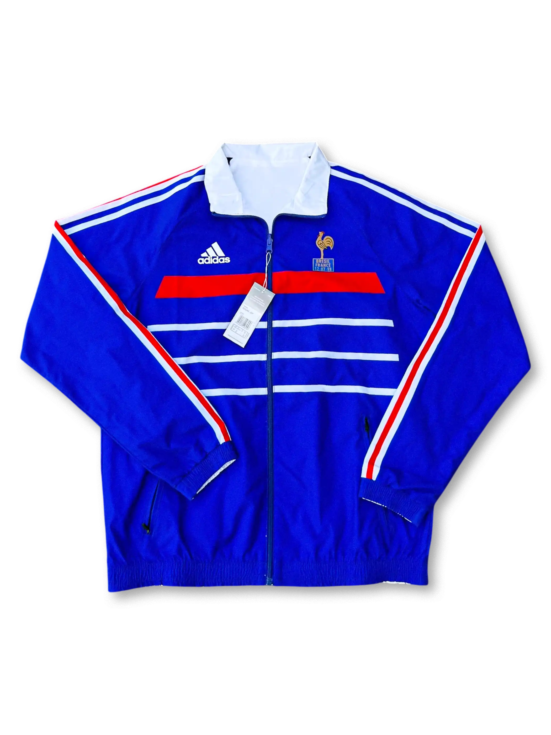 フランス98年のリバーシブルトレーニングウェア。クラシックなブルーとホワイトの配色とレトロなデザインが融合し、ワールドカップ優勝の榮光を象徴する一着。