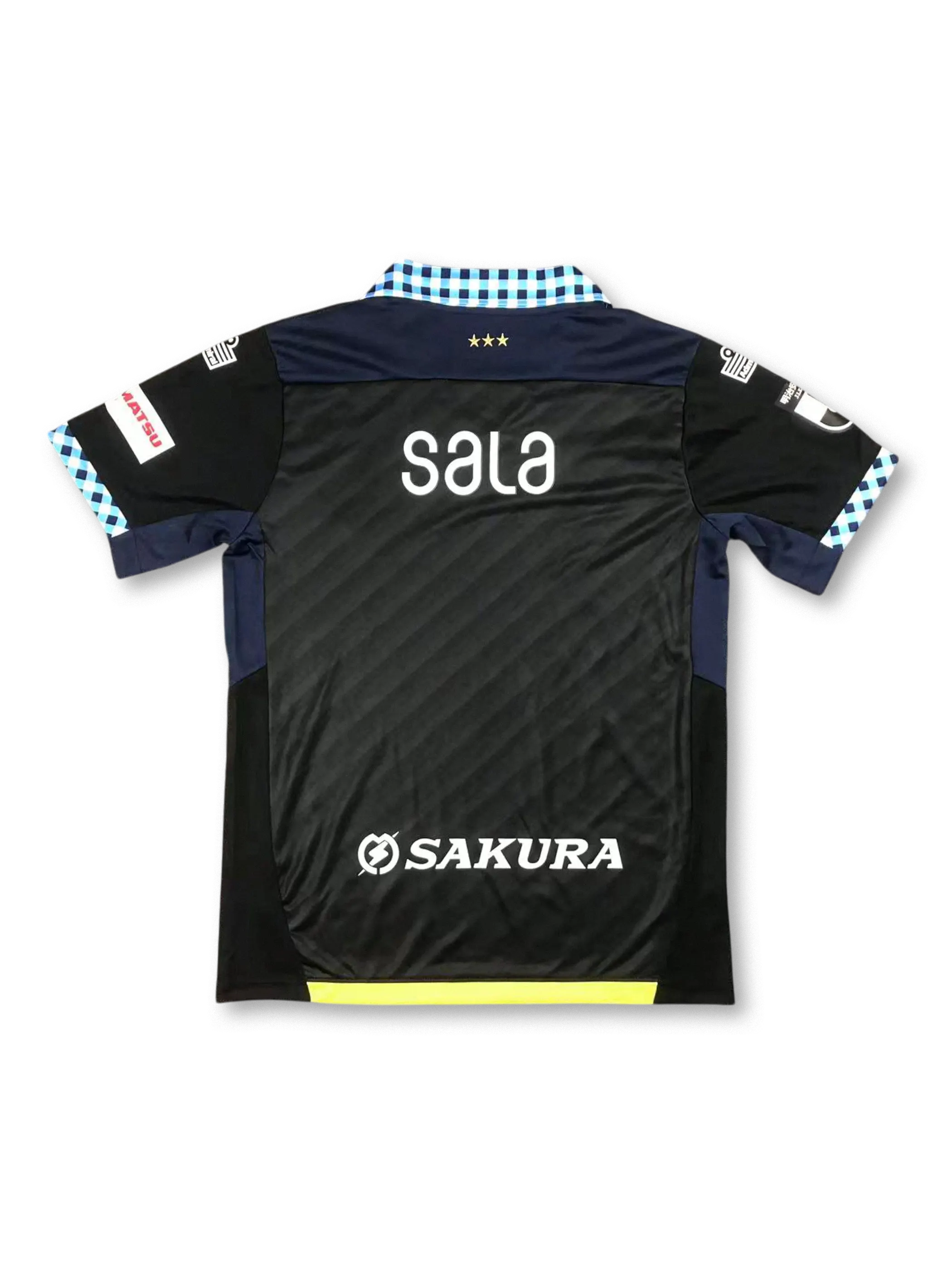 2024/25ジュビロ磐田セカンドアウェイジャージは、クラシックな黒とチェック柄襟が、チームの伝統と優雅さを表現する一着です。