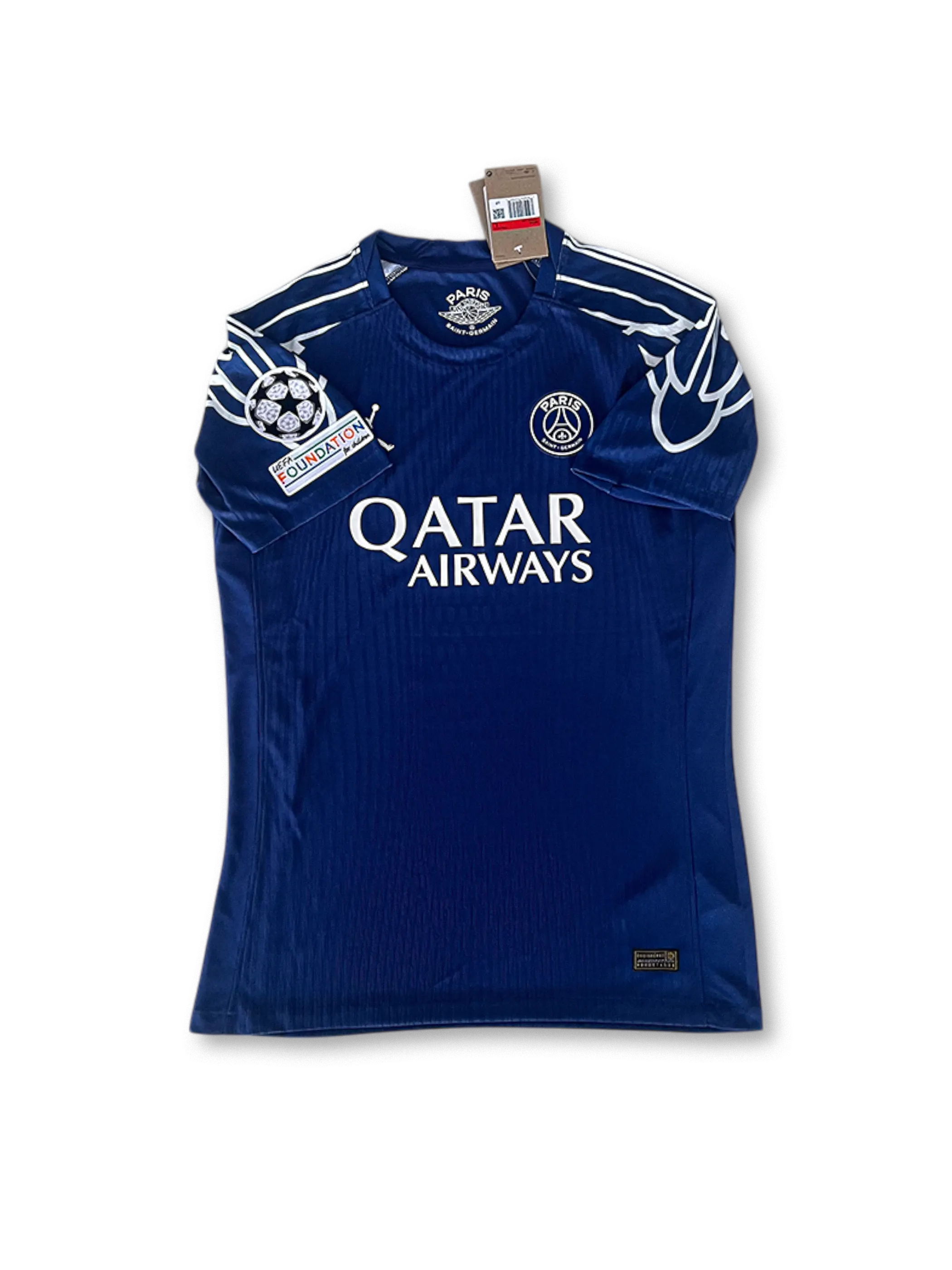 深紺ワントーンにホワイトウィングを走らせた2024/25サードキットは、CL制覇を狙うパリの洗練とデンベレ10番の創造性を凝縮した。