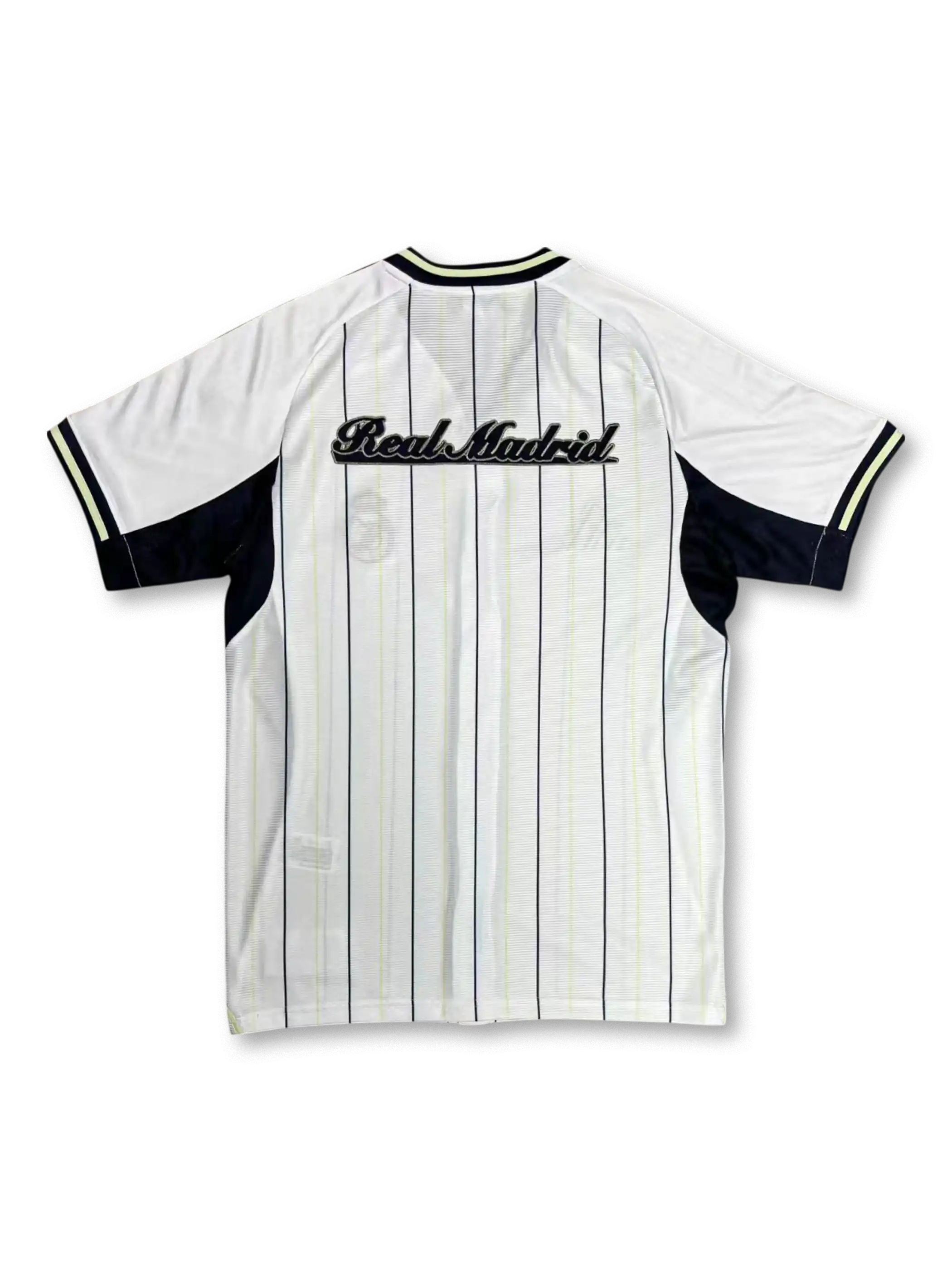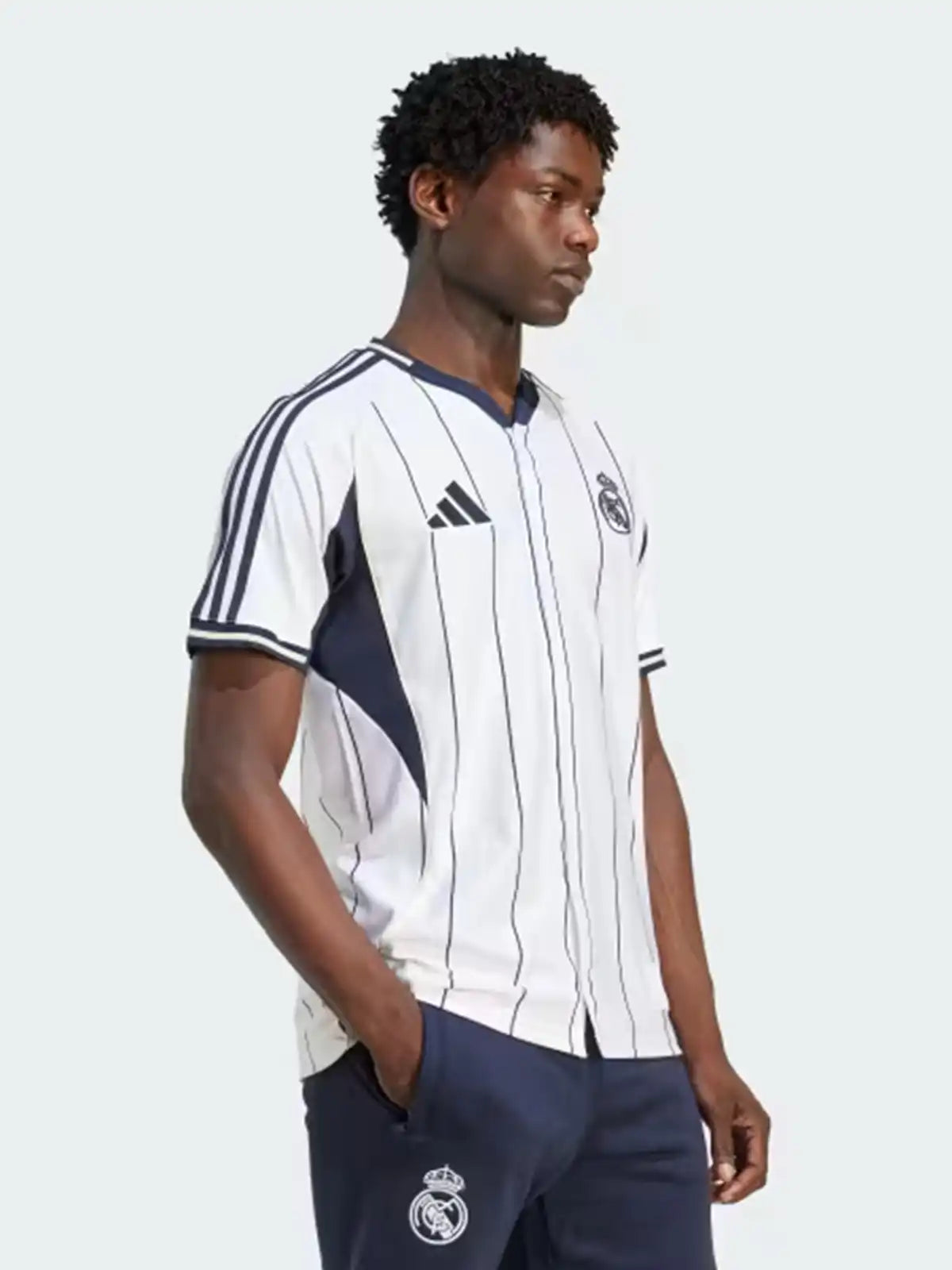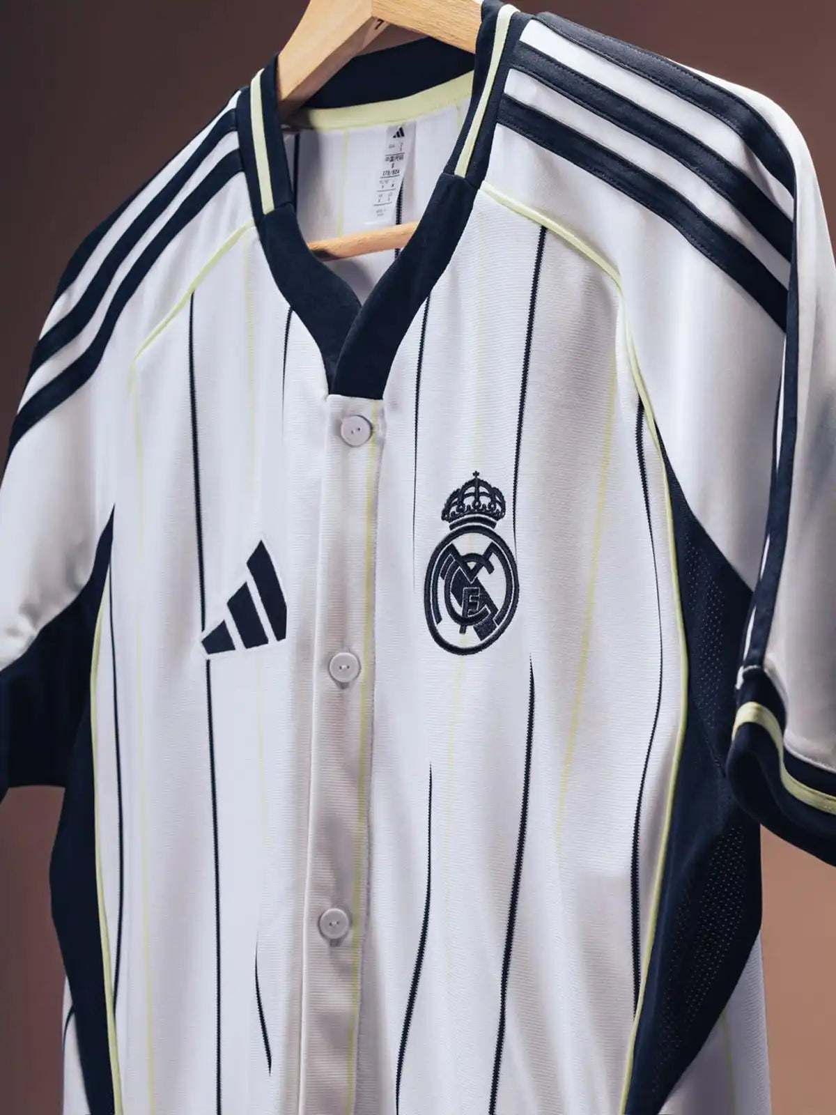 AEROREADYテクノロジーを採用した軽量ジャージ。ホワイトベースにネイビー&シトラスイエローのアクセントを配し、フロントにはクラブエンブレムをワントーン刺繍で配置。肩と袖には大胆なストライプ柄パターンをプリントし、USファンのスタイルにマッチするデザイン。通気性メッシュパネルとUVプロテクション機能でアクティブシーンにも最適。背面裾にはシリコン製「1902」ファウンディングタグをあしらい、公式ライセンスの証を添えます。