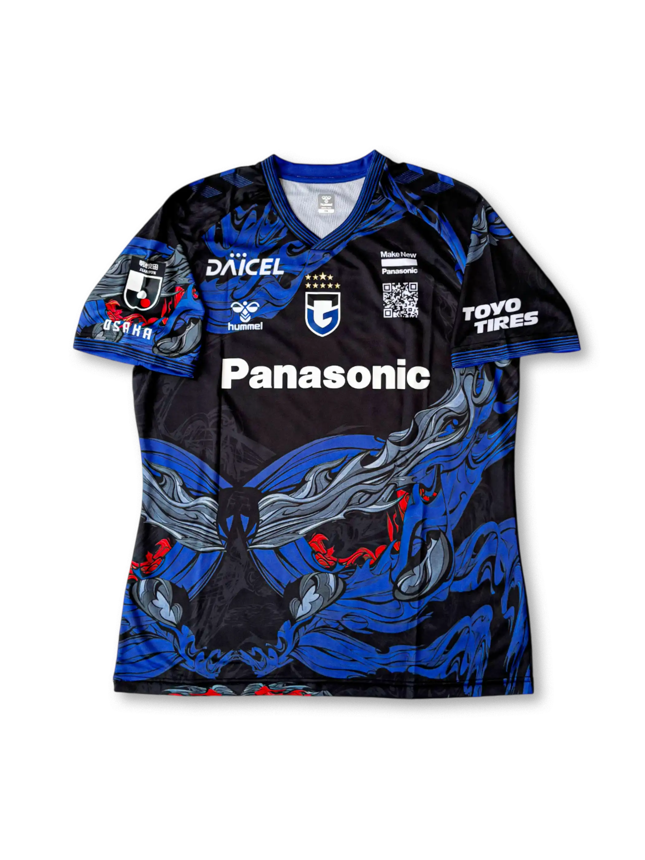 2025年大阪・関西万博を記念した特別デザインモデルで、ガンバ大阪のホームカラーに斬新なフェイスアート柄を融合。全面昇華プリントによる顔絵のモチーフは、未来・人・地球を象徴し、視覚的に強烈なインパクトを与える。軽量ポリエステル生地が通気性と吸汗速乾性を確保し、パナソニックやロート製薬、SHIPなど地域企業とのパートナーロゴも施された公式ファンユニフォーム。