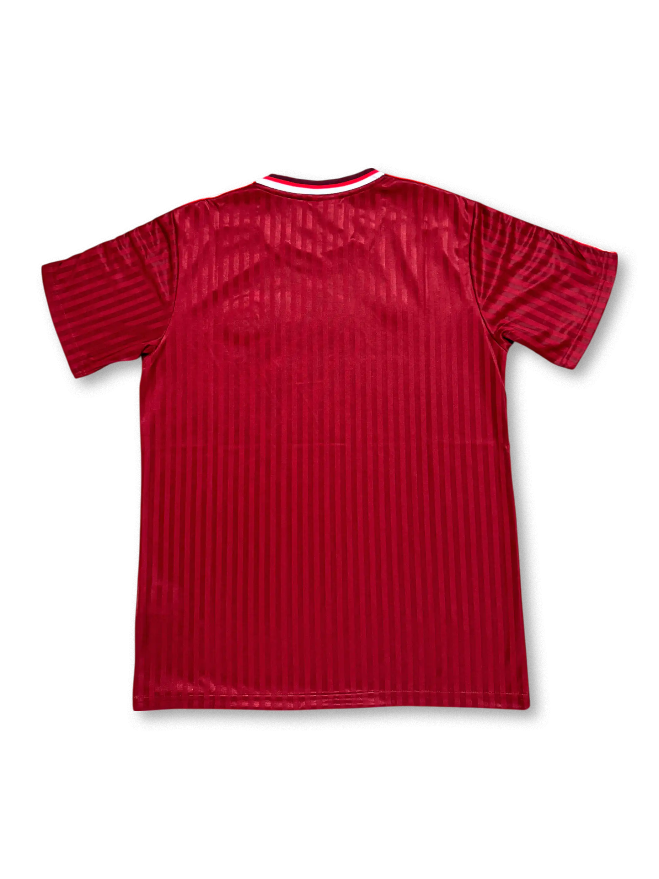 1990年代のオリジナルデザインを再解釈した2025-26年モデルは、象徴的なボルドーレッドカラーと三本線が際立つ仕上がり。クラシックなトレフォイルロゴと高密度のクラブ刺繍がプレミアム感を演出し、通気性の高いポリエステル生地が快適な着用感を実現。裾には刺繍ワッペンがあしらわれ、ビンテージファンの心を掴む一枚に仕上がっている。