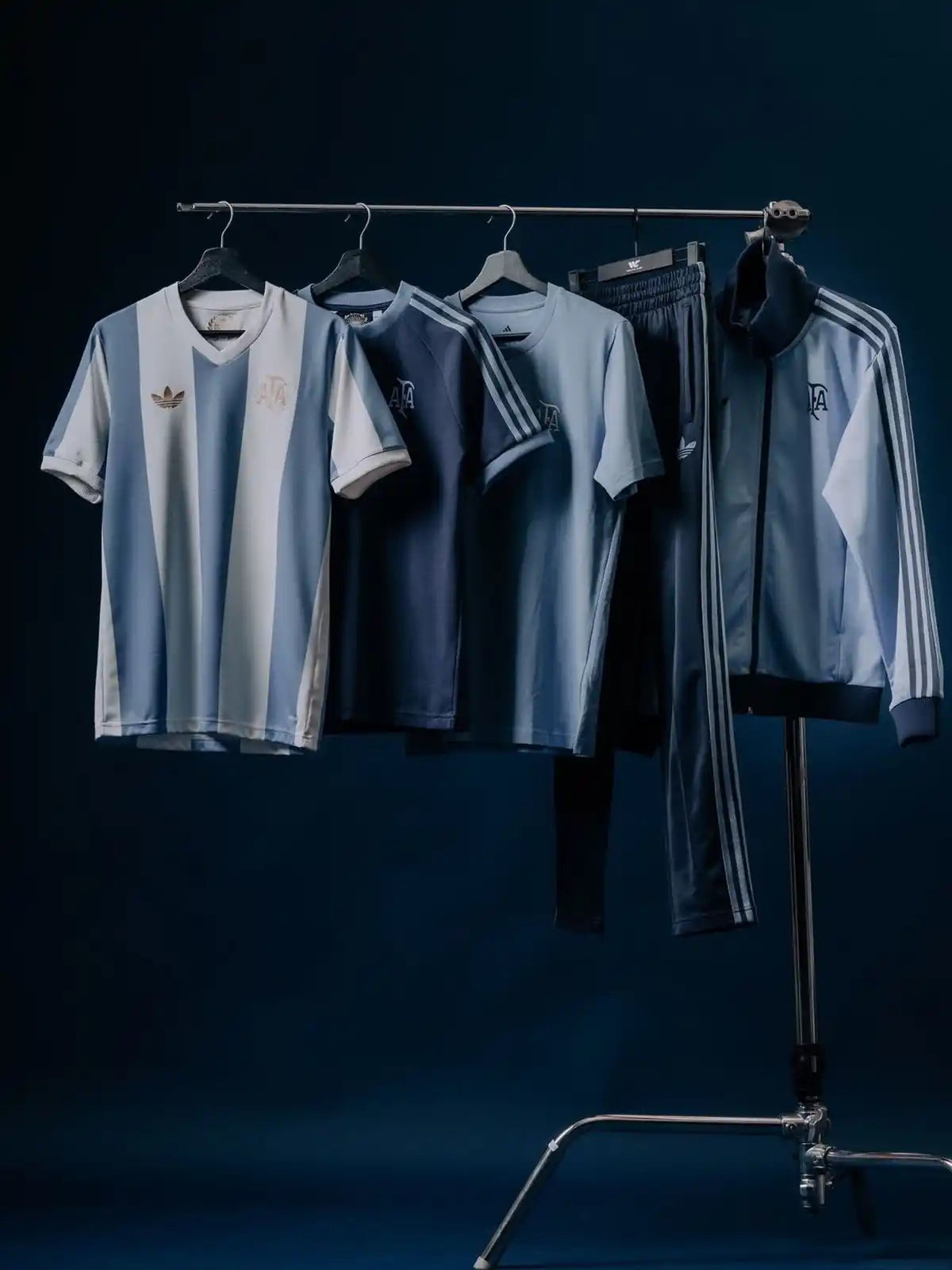 身頃はネイビー単色無地で統一されており、スカイブルーのアクセントとの組み合わせがアルゼンチン代表のカラーアイデンティティを的確に表現している。メキシコ代表・バイエルン・ユベントス等と同シリーズのadidas Originals復刻ライフスタイルラインのアルゼンチン代表版モデル。