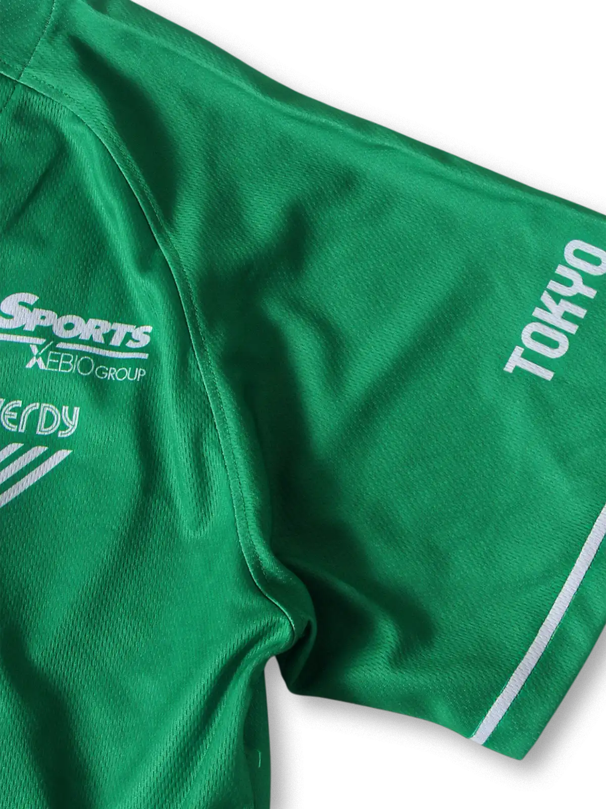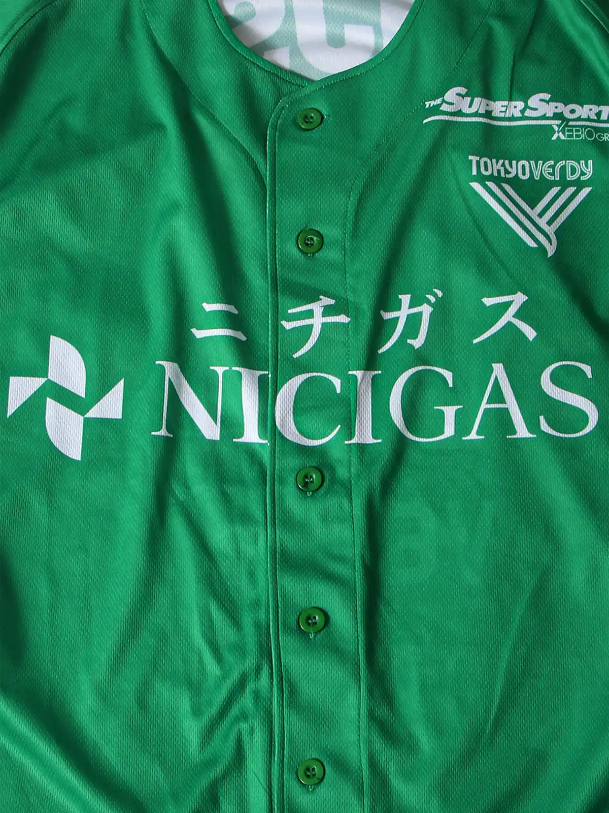東京ヴェルディ2023年ホームユニフォームは、鮮やかなグリーンをベースにし、胸元にスポンサー「NICIGAS」、背面には複数のスポンサー企業ロゴを配したデザイン。吸汗速乾素材を使用し、スポーツ時の快適さを追求。袖にはチーム名や地域名がプリントされており、ファンにも人気の高いモデル。