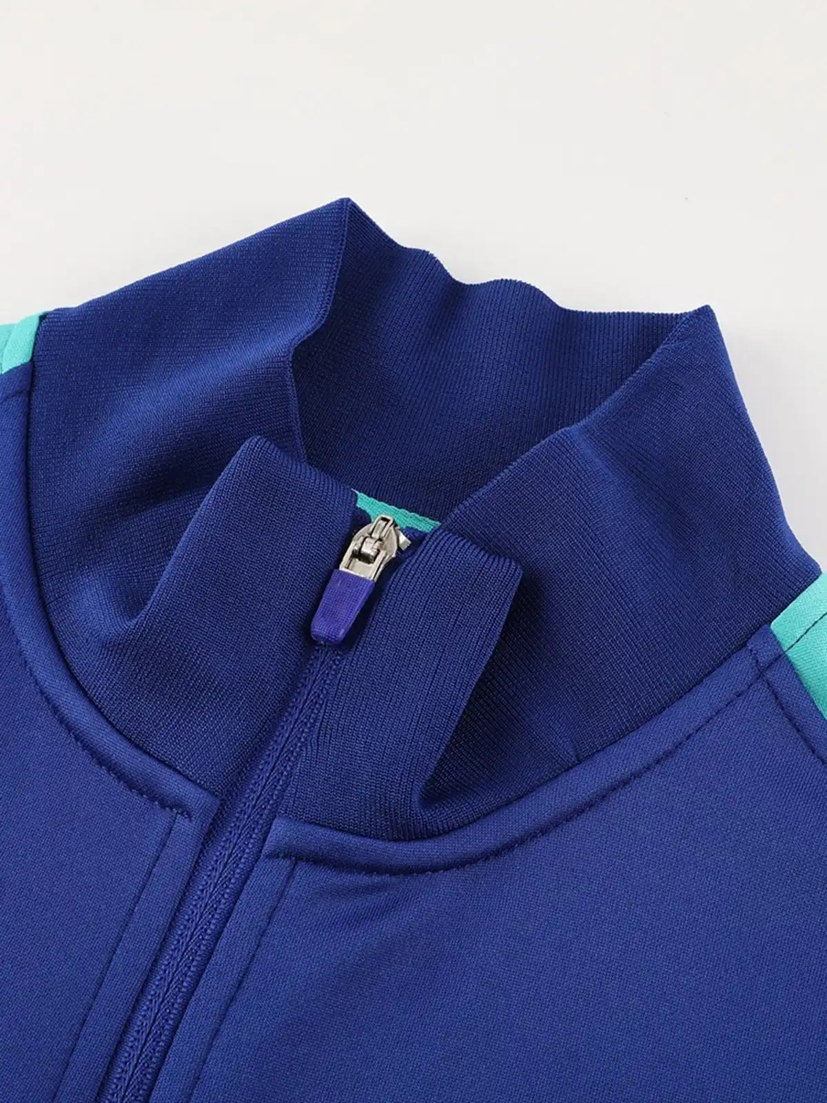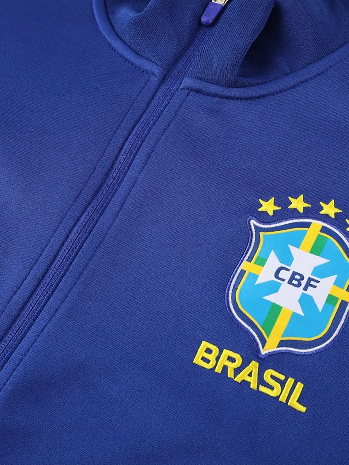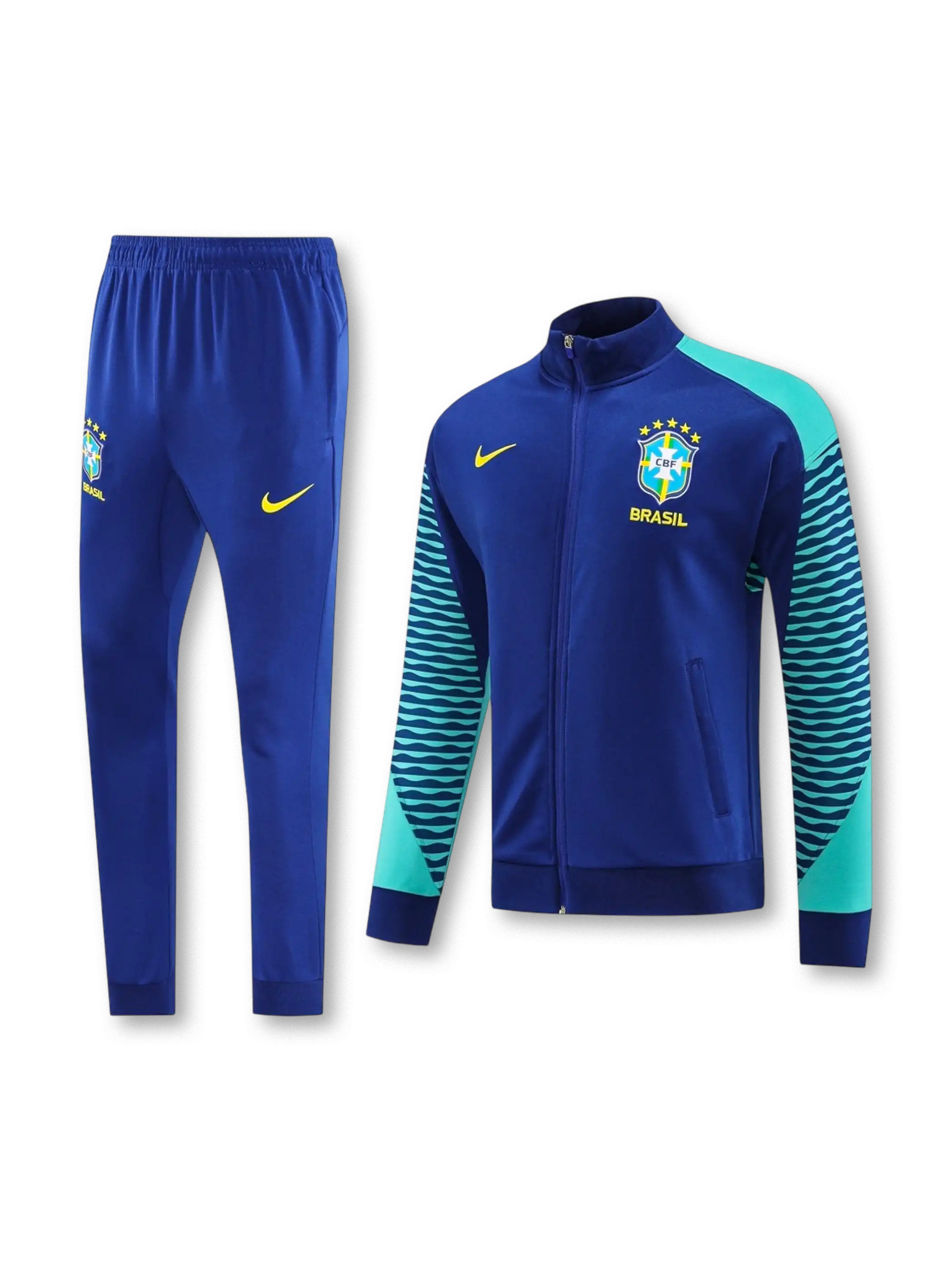 ネイビー×ターコイズ配色のブラジル代表フルジップ上下セット。