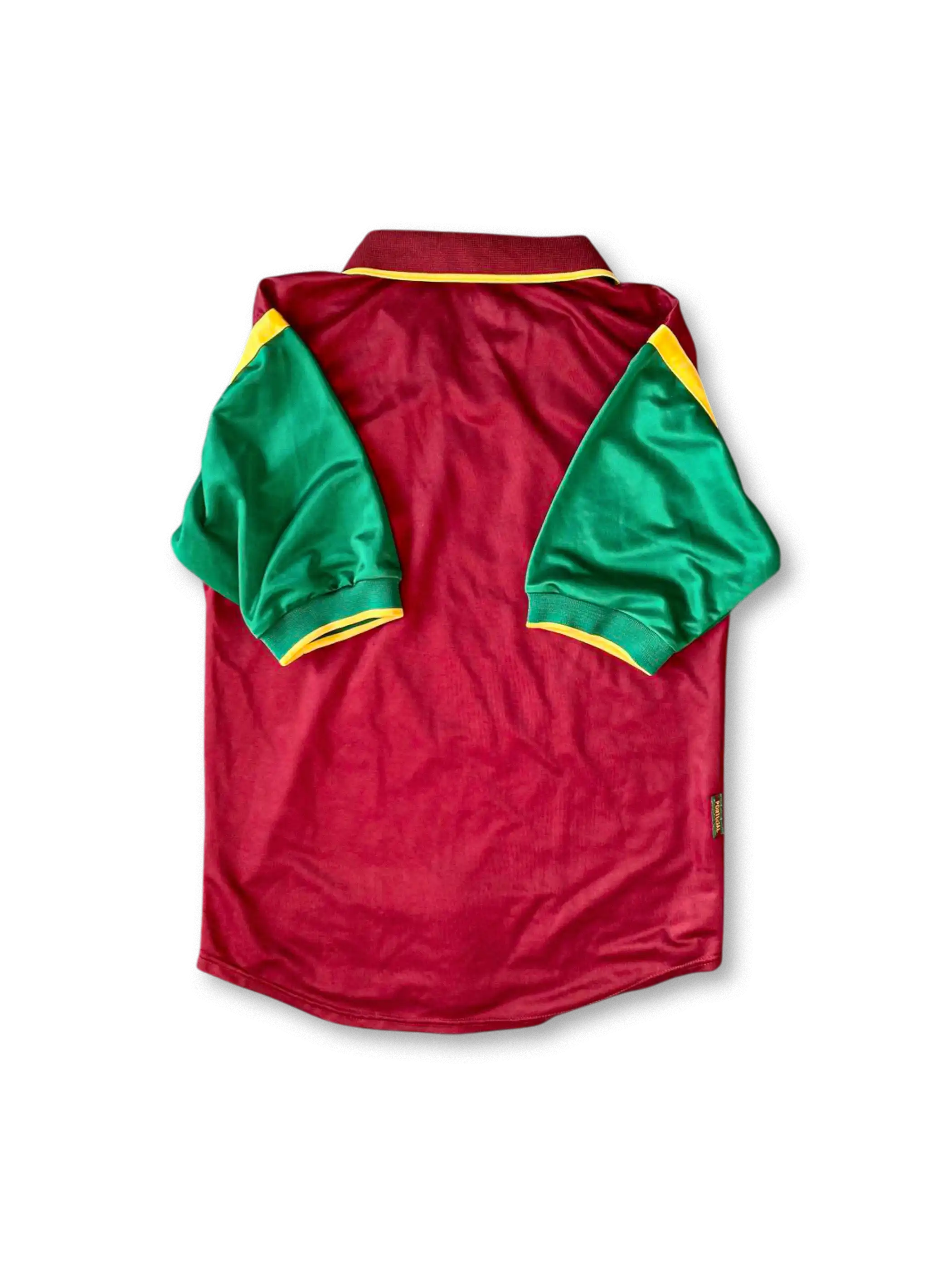 1998-99年のポルトガル代表ホームユニフォームは、ナイキ製で伝統的な赤と緑の色使いが特徴。高密度刺繍のポルトガル協会エンブレムとナイキロゴが鮮やかに映え、通気性に優れたDri-FIT素材で選手の快適なプレーをサポート。90年代後半のレトロ感と最新技術を融合させた一枚。