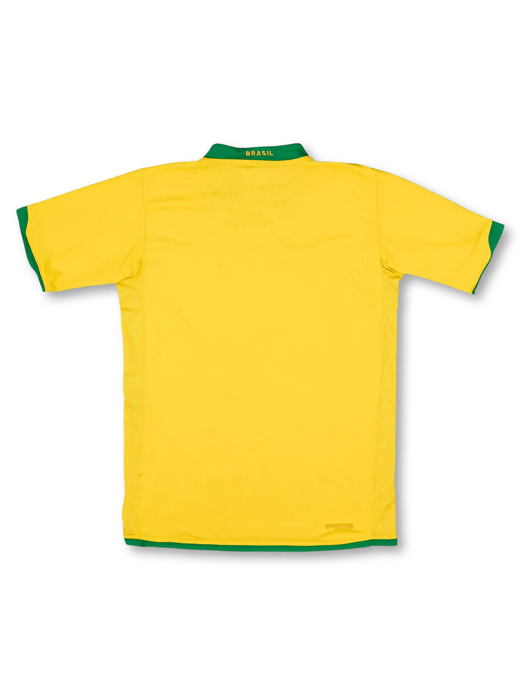 Nike Dri-FIT仕様。カナリアイエローのボディにグリーンのノッチ襟と袖口、胸は高密度刺繍のCBFクレストとスウッシュ。側面メッシュで通気性を強化し、吸汗速乾ポリエステルが試合強度での快適性を確保。90sからの系譜を継ぐシャープな裁ちと光沢感がコレクター価値を高める。