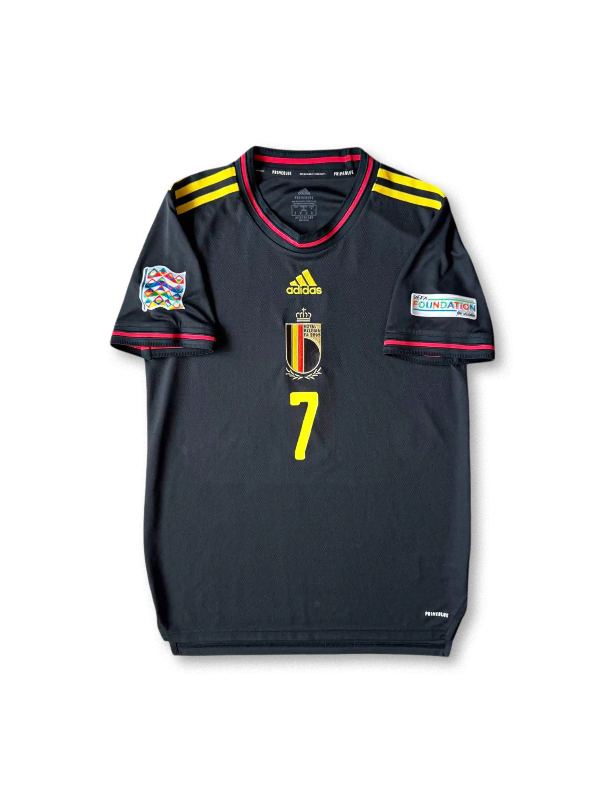 UEFAネーションズリーグで着用された、デ・ブライネ#7入りベルギー代表2022年アウェイユニフォーム。