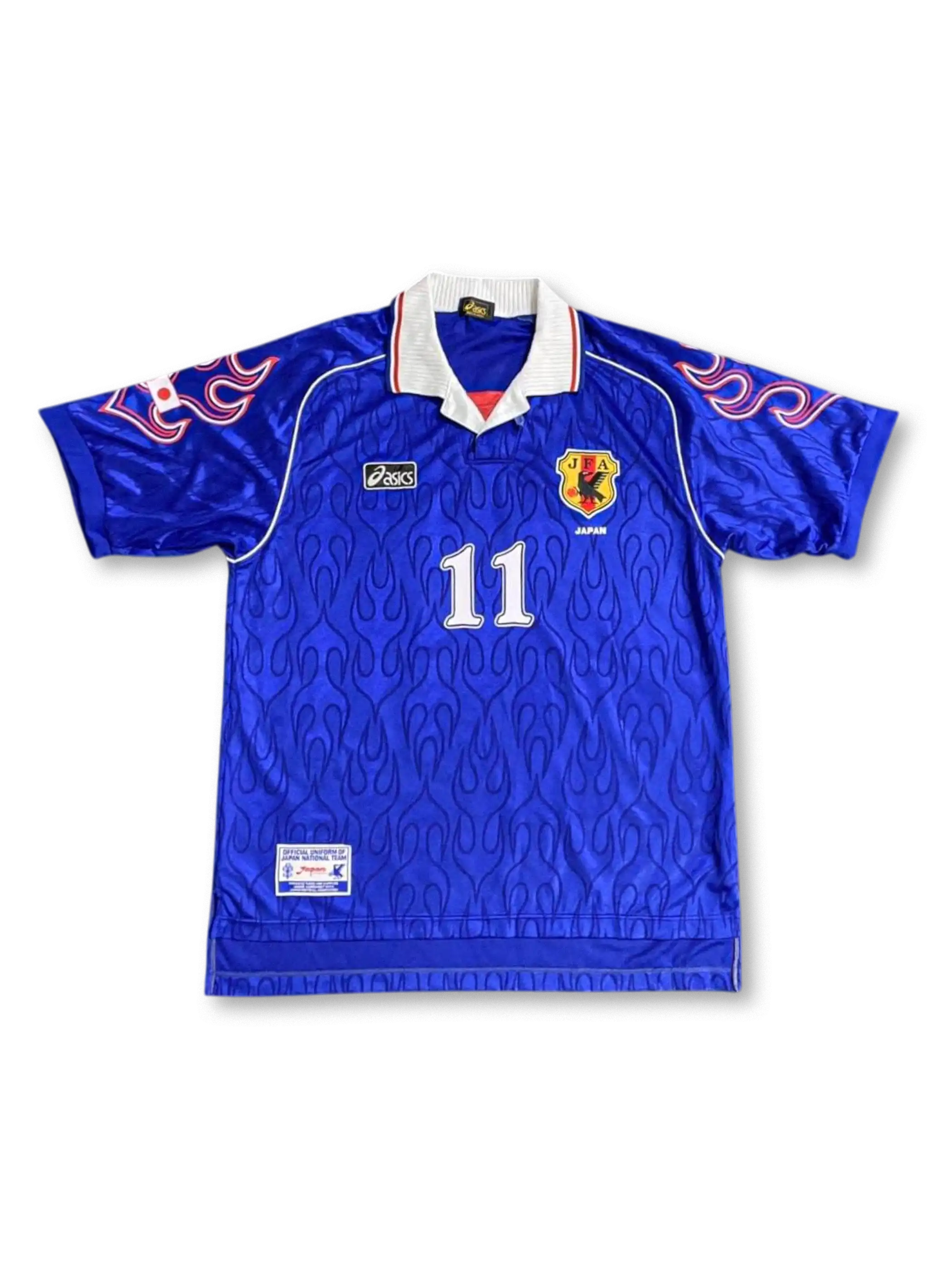 1998年フランスW杯で使用された伝説的な「炎ユニフォーム」。背番号11の三浦知良モデルは、日本サッカー史に刻まれる特別な一枚。