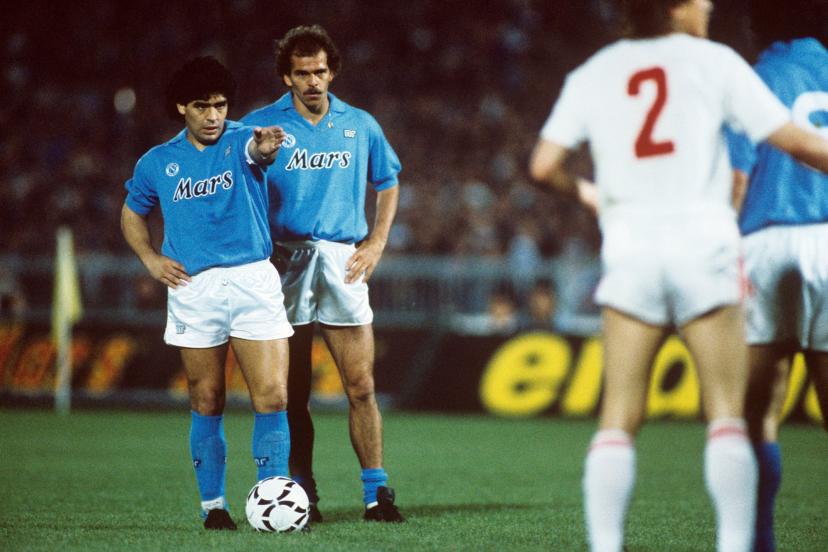 Marsスポンサーとスクデットワッペンを配した、90-91シーズンの象徴的なナポリホームユニフォーム。