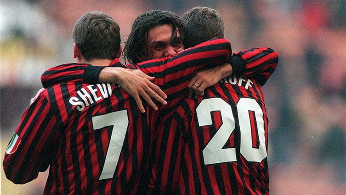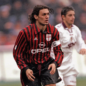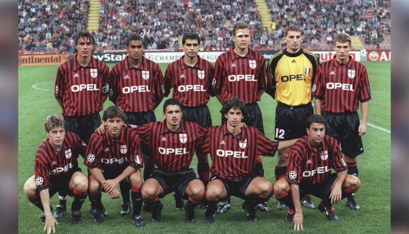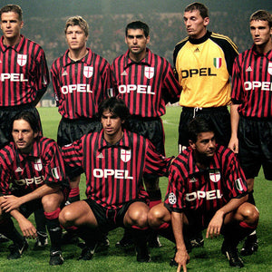 赤黒ストライプを基調とした1999-00年ACミランのホームモデル。