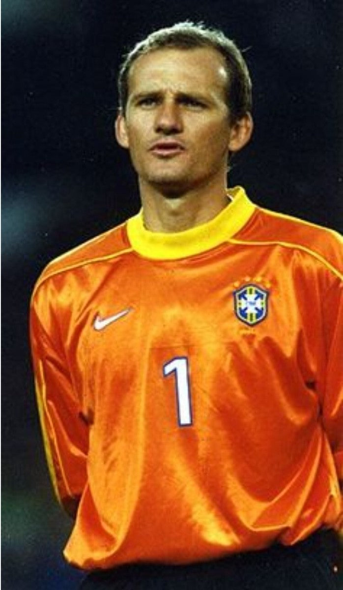 鮮烈なオレンジを基調にイエローのアクセントを施した1998年モデルGKユニフォーム。胸にはブラジル代表エンブレム、背面には「TAFFAREL #1」のマーキング入り。Nike製Dri-FITポリエステル素材を使用し、快適性と通気性を確保した当時の公式仕様。90年代を象徴するクラシックなデザインとワールドカップの歴史を感じさせる一着。