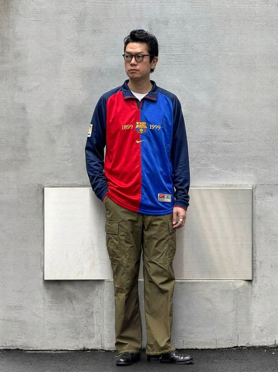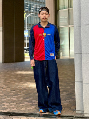 この特別仕様ユニフォームは、クラブ創立100周年を記念してデザインされたモデル。伝統の赤と青を大胆に左右で分け、胸には「1899–1999」の金色刺繍を配置。Nike製の高品質素材とクラブエンブレムが特別感を際立たせる。長袖仕様は市場流通が少なく、クラブ史を象徴するコレクターズアイテムとして非常に人気が高い。