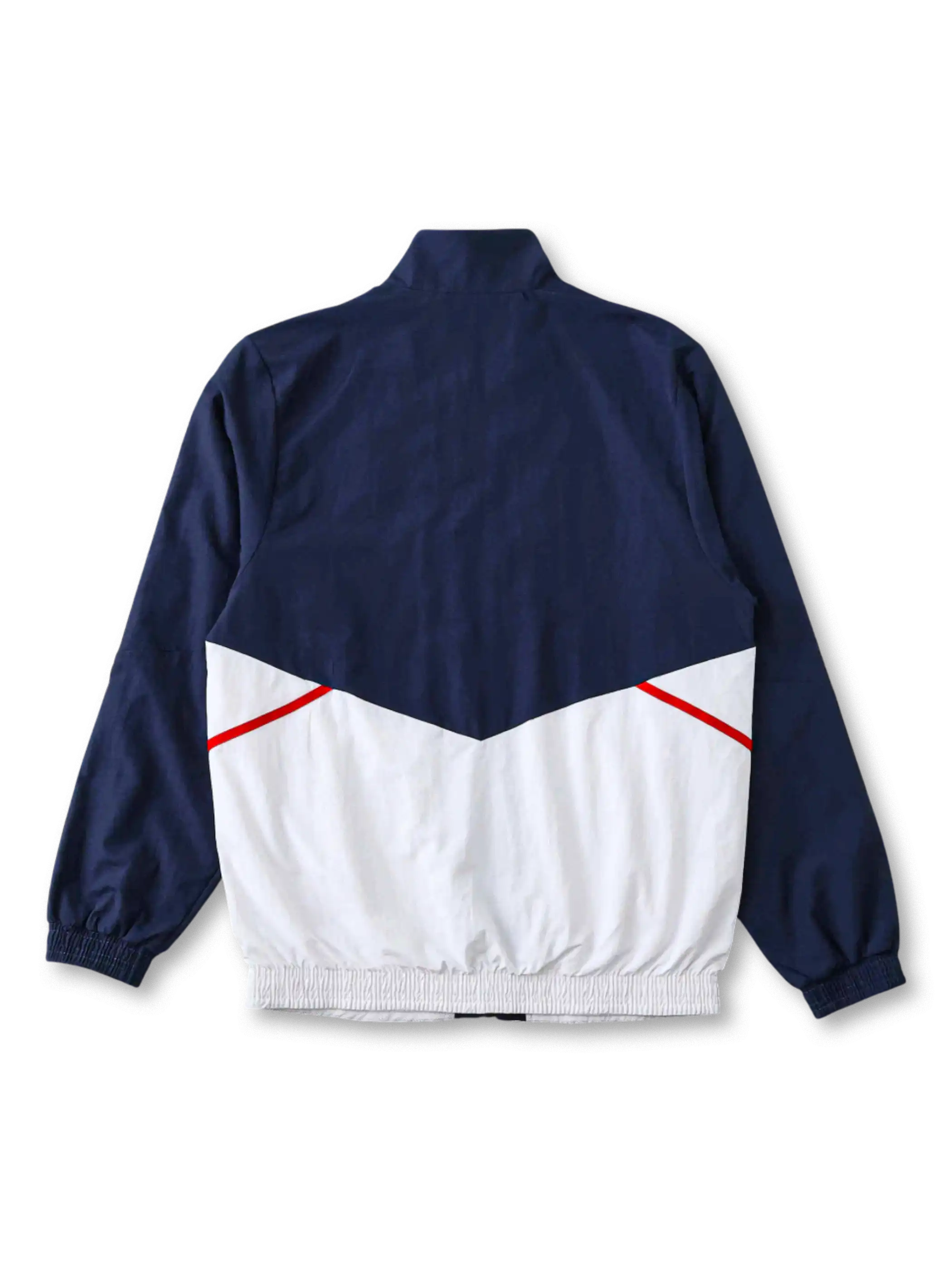 ネイビーとホワイトを基調にピンクのスリーストライプを施したアーセナル防風ジャケット。