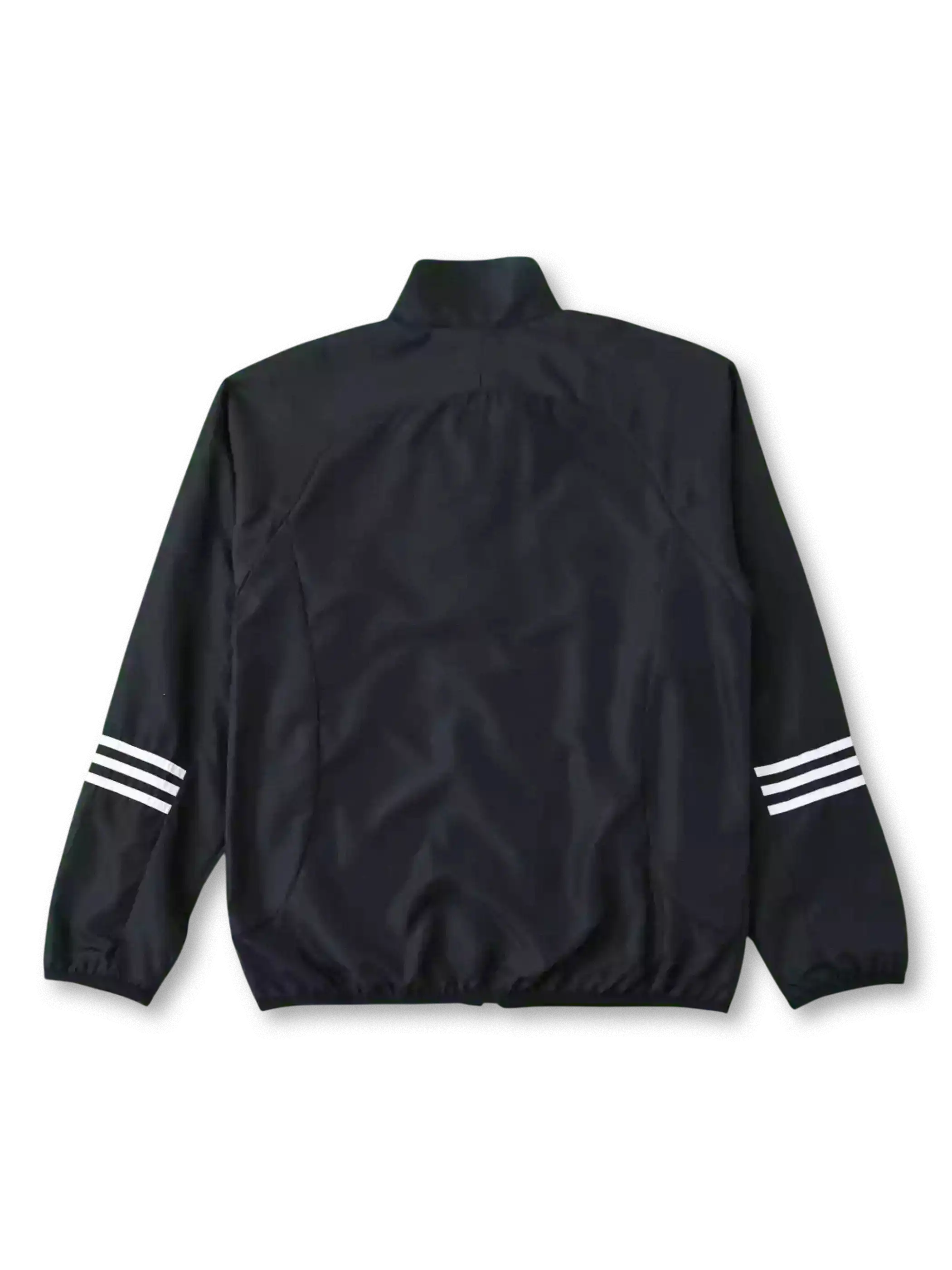 クラシックなブラックを基調に、袖のホワイト3本ラインがシンプルながらも強い存在感を放つデザイン。胸にはクラブエンブレムとadidasロゴを配置。軽量ポリエステル素材を採用し、防風性と着心地の良さを兼備。トレーニングから日常のカジュアルスタイルまで対応可能な万能ジャケット。