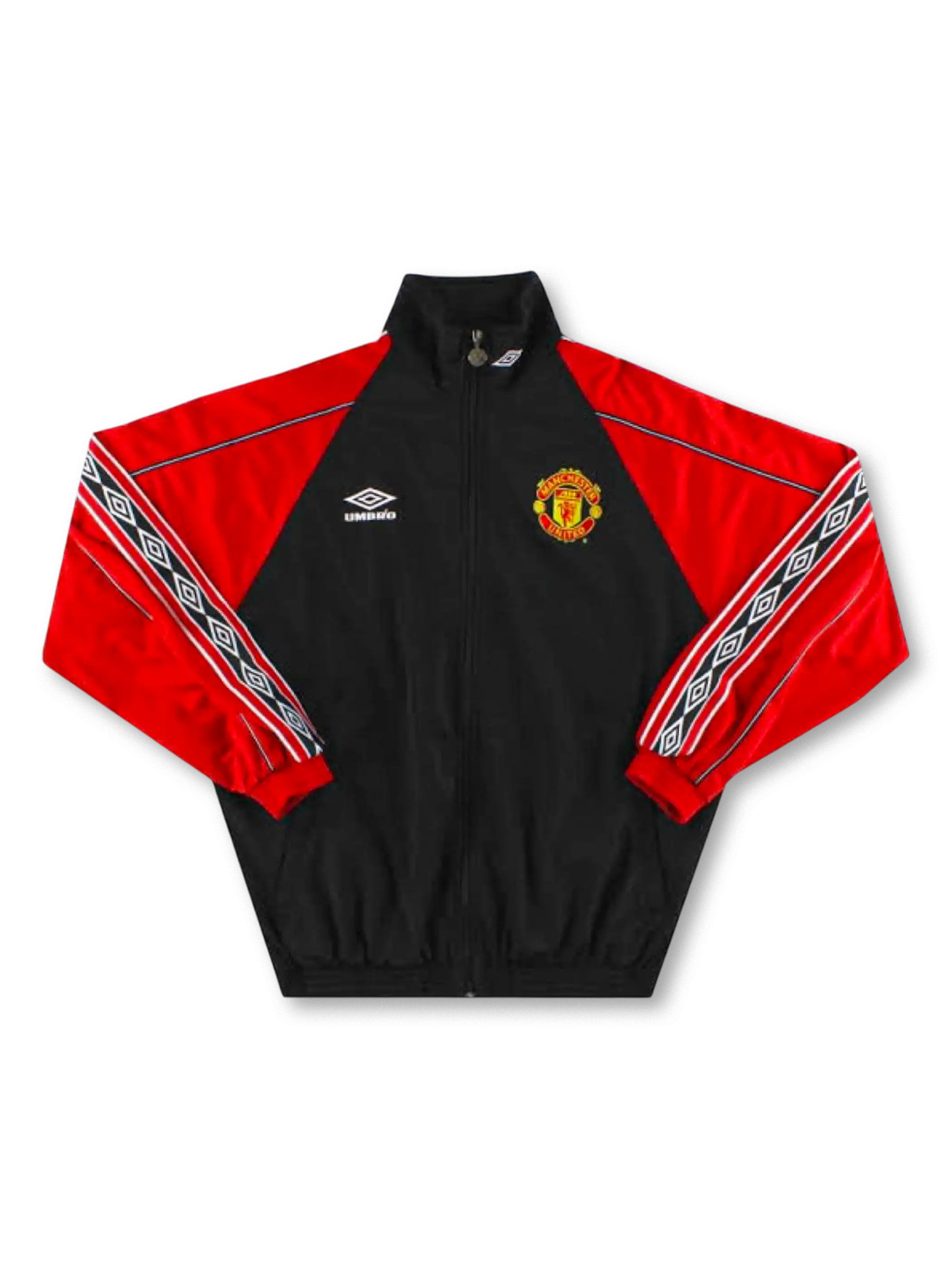 UMBRO製ならではの厚みある素材感と、両袖に配置された特徴的なダイヤモンドロゴテープが印象的。胸元にはクラブエンブレムとUMBROロゴが刺繍され、シンプルながらも存在感のある一着。実際に選手用モデルとして作られた希少な仕様で、当時のトレーニングや試合前のウォームアップシーンを象徴するアイテム。