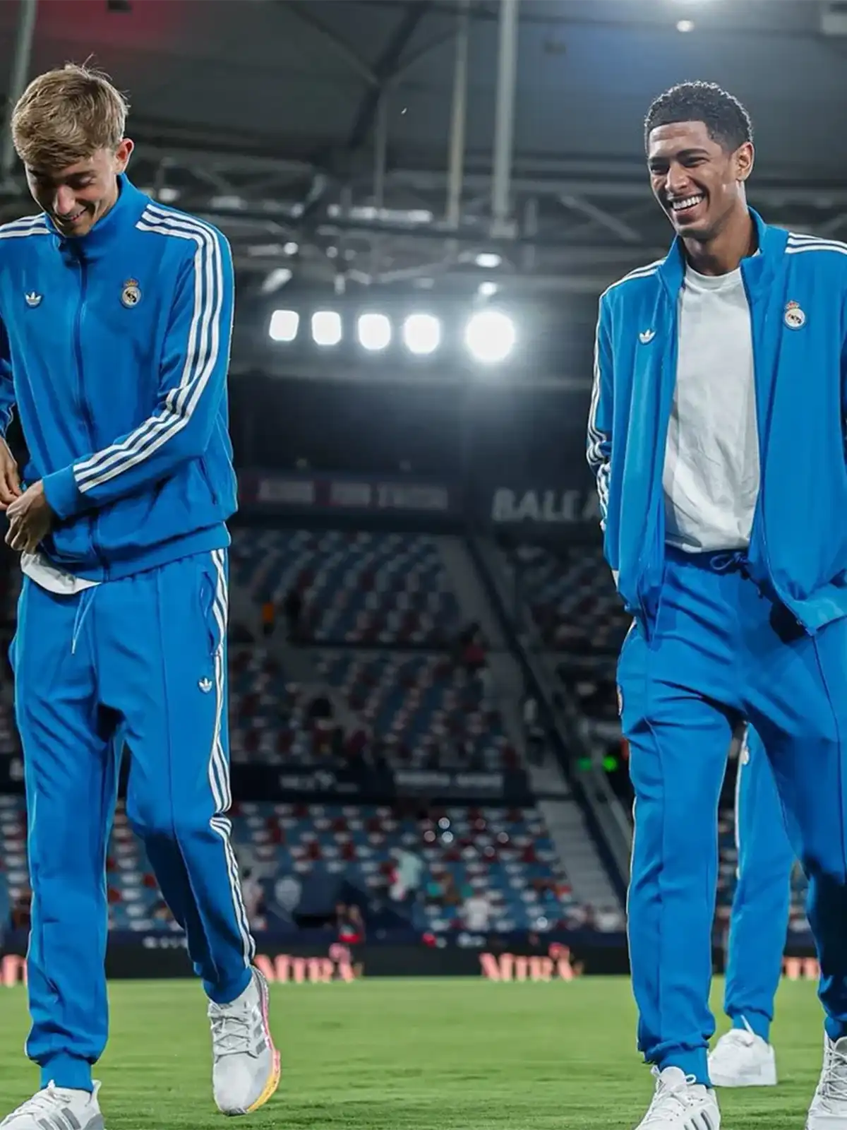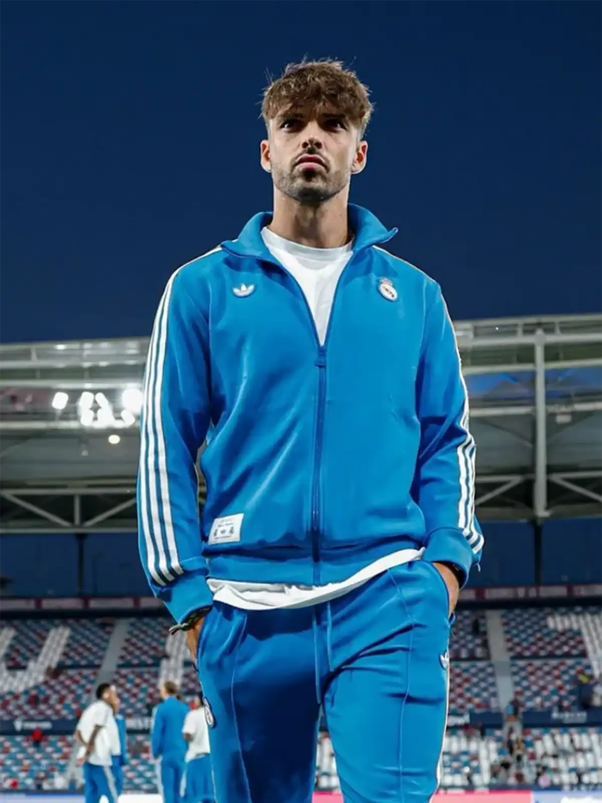 レアル・マドリードのクラシックな魅力を現代の快適性で再構築した「テラスアイコンズ」トラックトップ&パンツのセットアップ。