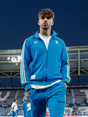 80年代のスタジアムスタイルを彷彿とさせるブルーを基調に、胸と腿部には刺繍仕様の三つ葉ロゴとクラブエンブレムを配置。アイコニックなスリーストライプスが肩から袖、パンツサイドに走り、オリジナルスらしいレトロなムードを表現しています。