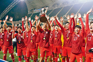 グラデーションストライプで再解釈された香港代表の情熱的ホームモデル。