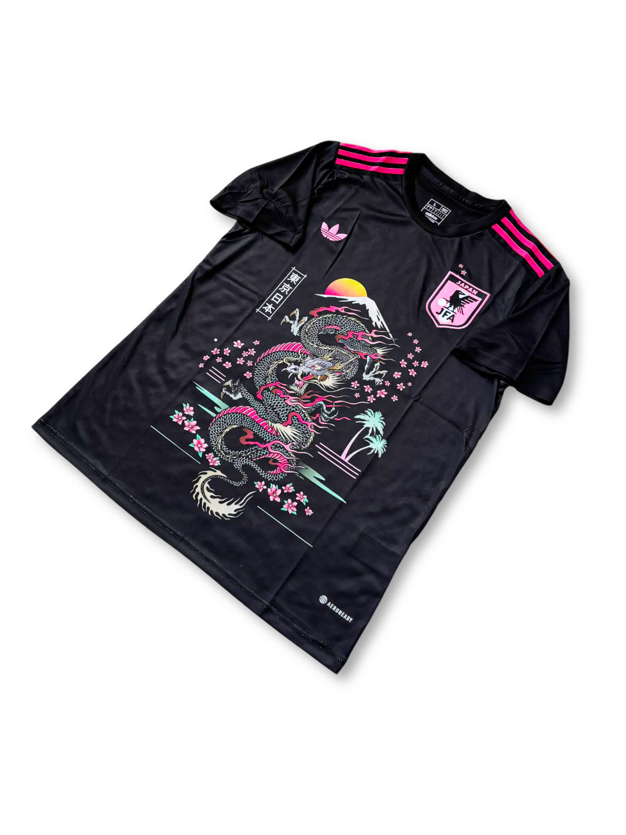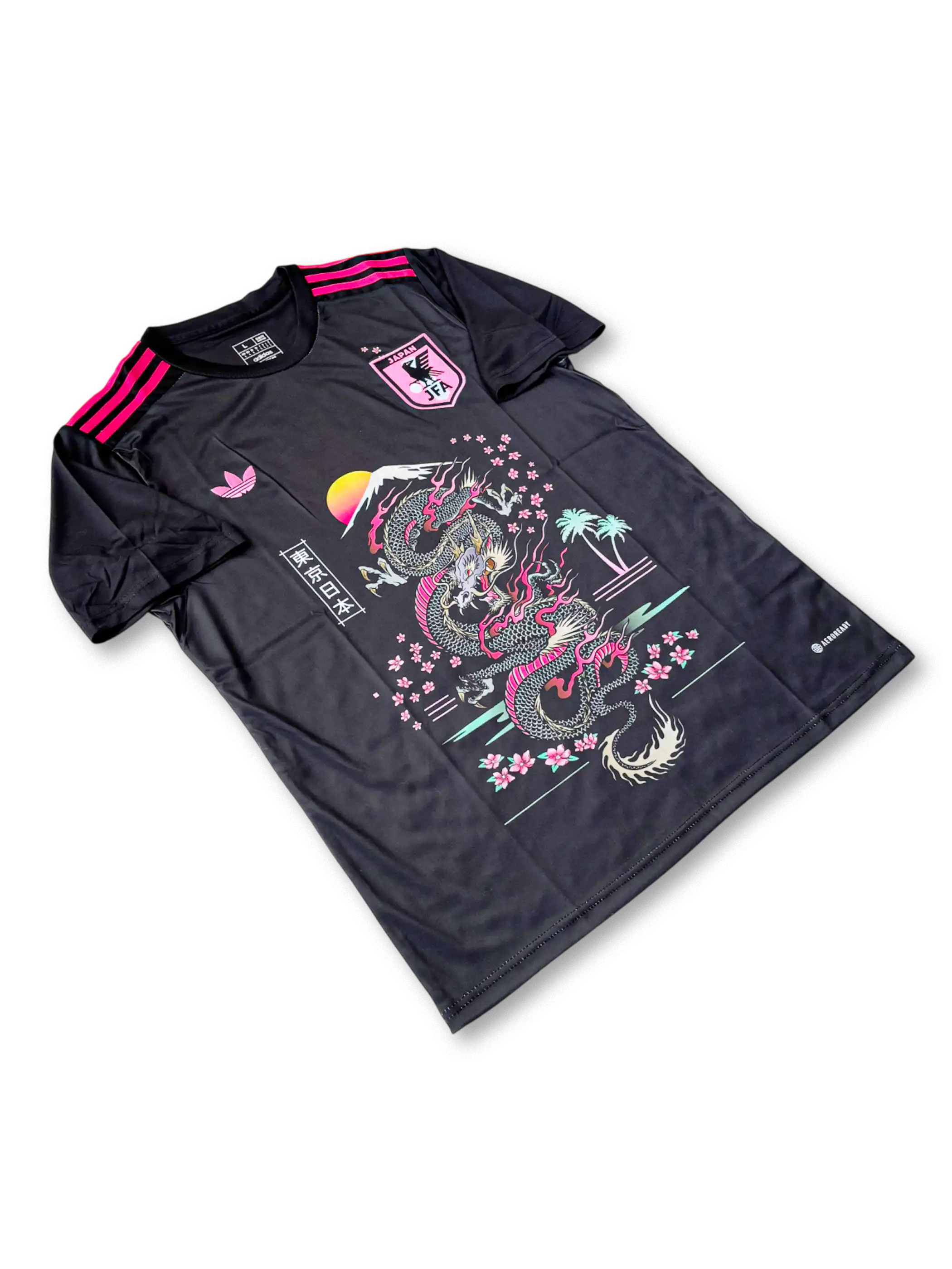 日本代表の象徴「サムライブルー」から一転、漆黒のボディに龍と桜が描かれたアート仕様のスペシャルエディション。フロントには昇り龍が富士山と日の出を背景に躍動し、桜の花びらが舞う構図で日本の伝統美と精神性を象徴。
