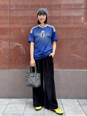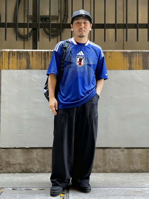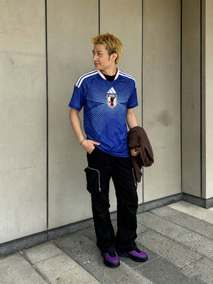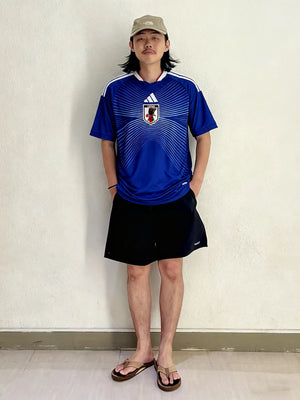 日本代表の伝統色であるサムライブルーを基調に、胸部に放射線状のグラフィックを配した近未来的デザイン。白のスリーストライプと襟裏の赤いアクセントが日本国旗を象徴し、チームの結束を表現。吸汗速乾性に優れたAEROREADY素材を採用し、軽量で快適な着用感を実現。adidas製の高品質レプリカモデルとして、サポーターのために設計された一着。