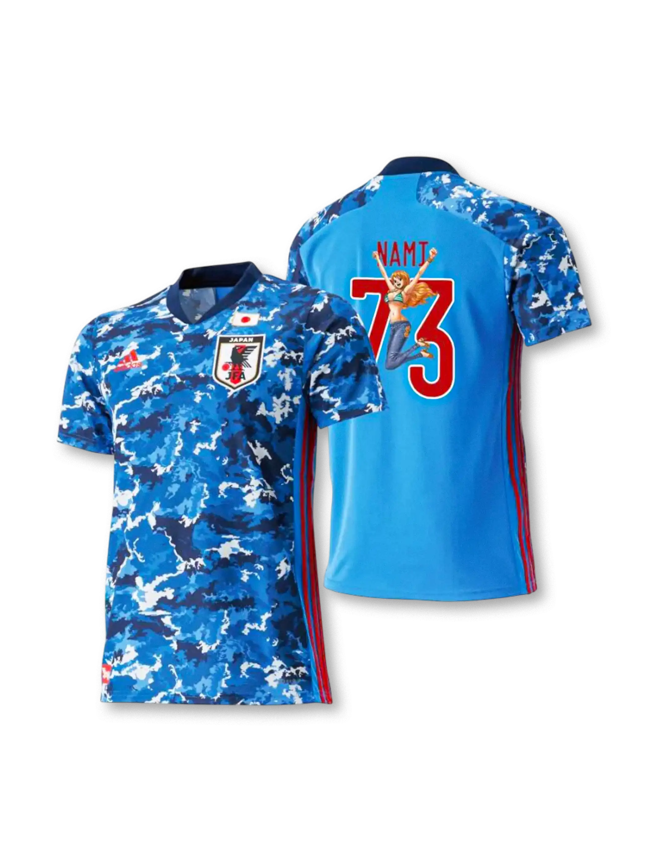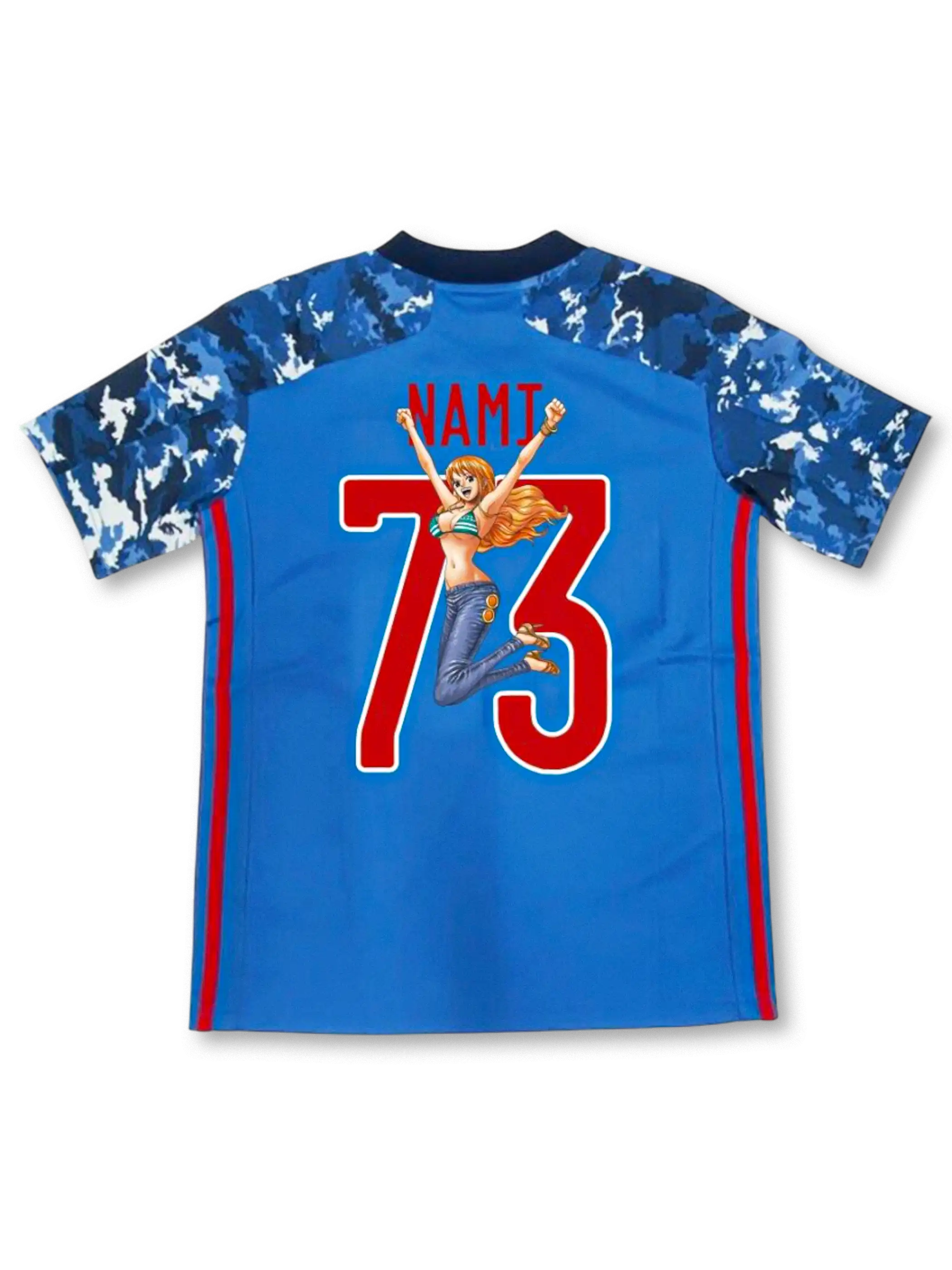 2024年の代表ホームユニフォームをベースに、背面にナミのキャラクターアートと“73”の特製ナンバリングを施したカルチャーコラボ仕様。伝統のサムライブルーカモフラージュ柄に、赤のスリーストライプがアクセントを添える。素材はAEROREADYを採用し、通気性と速乾性に優れる。ONE PIECEとの公式コラボレーションを示す特別タグが付属し、ファン必携のコレクターズモデル。