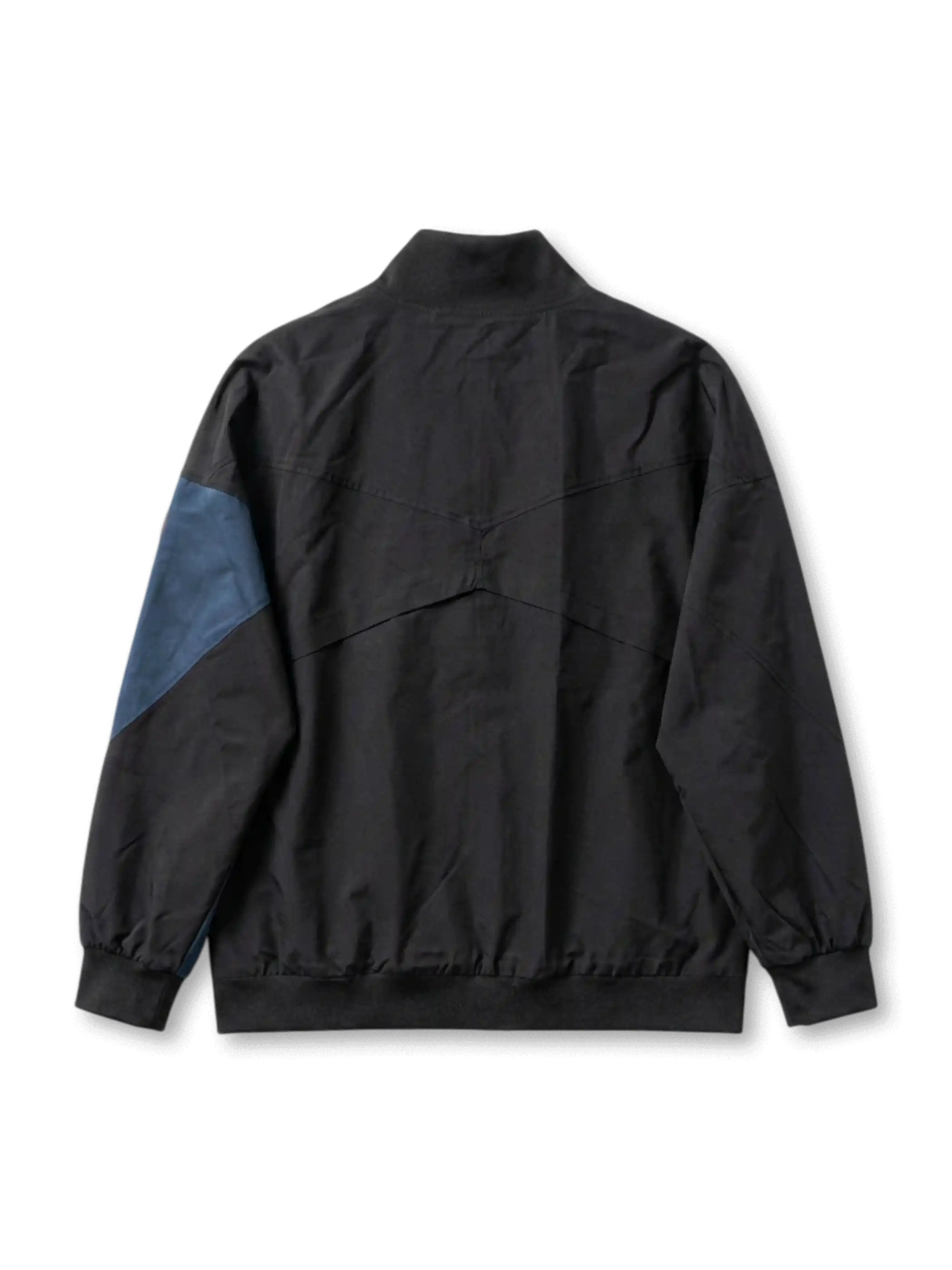 マットなブラックボディをベースに、胸元へオレンジのスウッシュとクラブエンブレムを配置したトレーニングジャケット。片袖にはブルーの切り替えパネルとサークルロゴ、もう一方の袖にはINTER表記を加え、シンプルな全体構成の中にクラブの識別性を明確に持たせている。フルジップとスタンドカラーを備えた軽量仕様で、非試合用・公式トレーニングラインらしい実用性と、日常着としても使いやすい落ち着いたデザインを両立した一着。