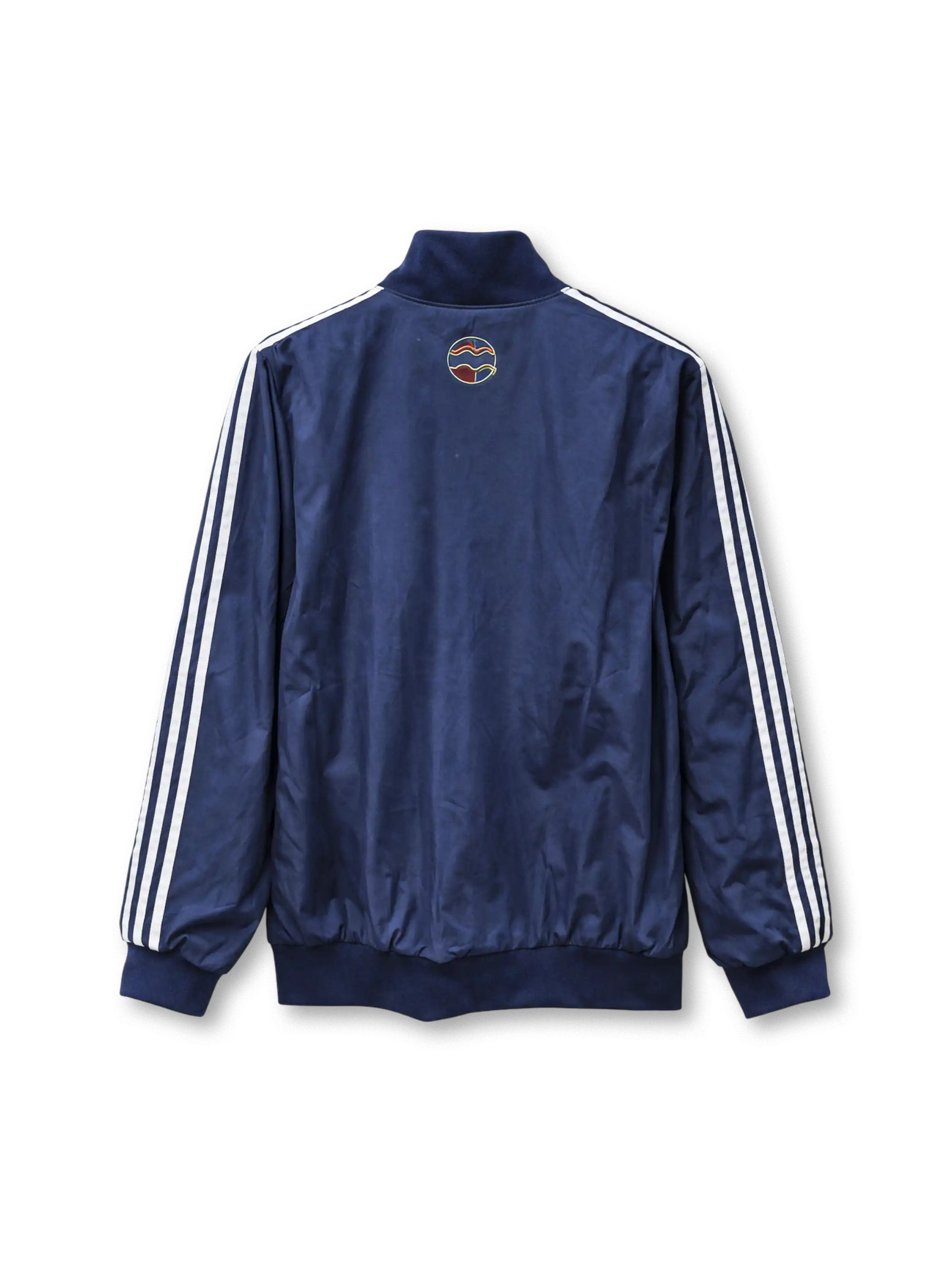 濃紺×スリーストライプスにユヴェントスの刺繍意匠を配した厚手ジップジャケット。