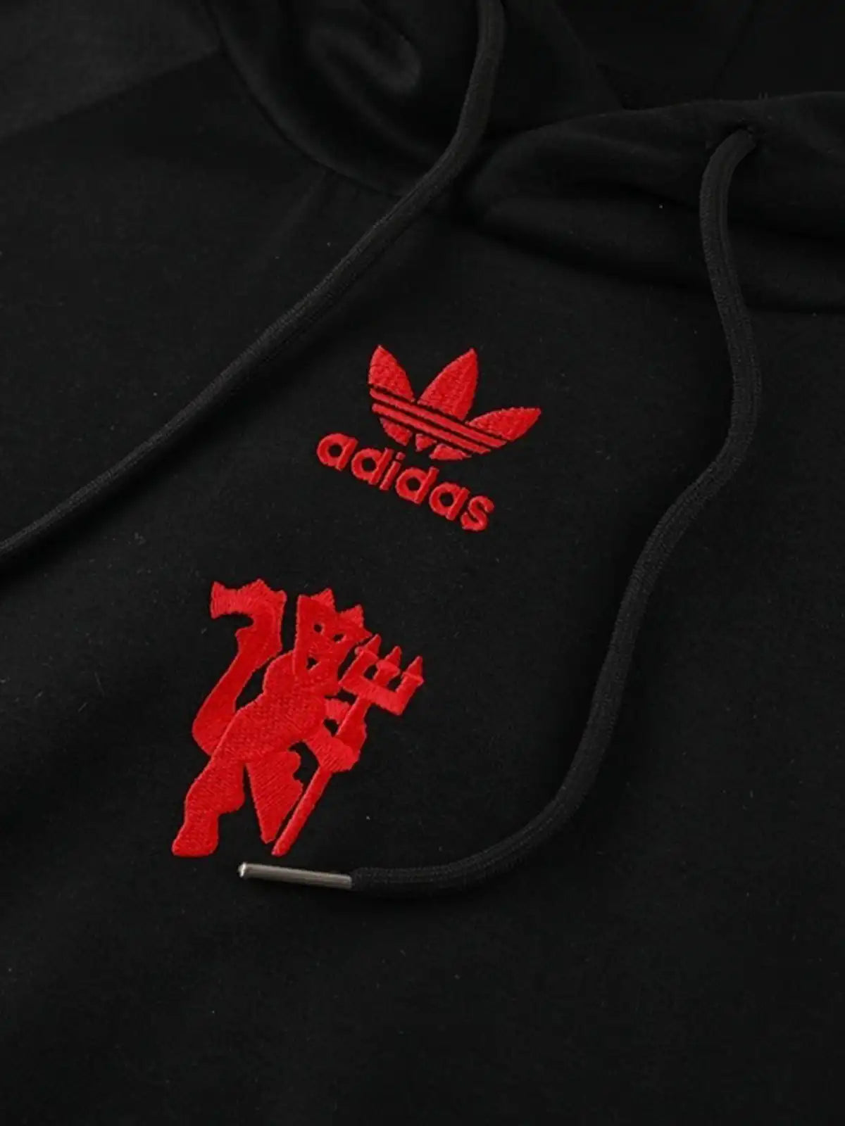 ブラックを基調にレッドとホワイトの切替を施した、マンチェスター・ユナイテッドのフーデッドトレーニングセット。