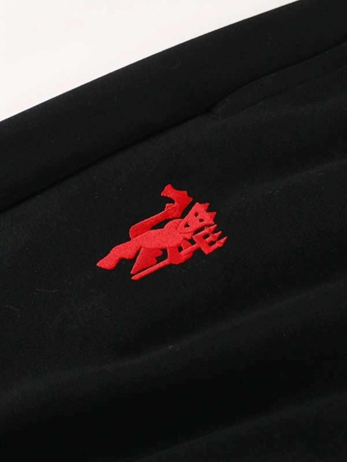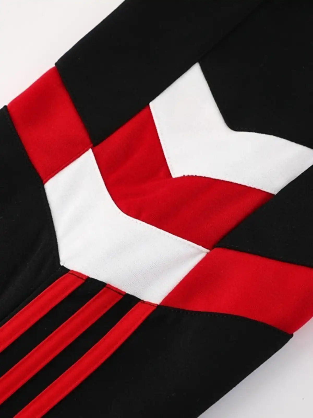 ブラックボディにクラブカラーのレッドとホワイトを配したコントラストデザイン。胸元とパンツにクラブエンブレムを配置し、フーデッドトップとテーパードパンツの組み合わせで動きやすさを確保。トレーニング用途を想定した実用的な設計と、日常着としても成立するシャープな外観が特徴。